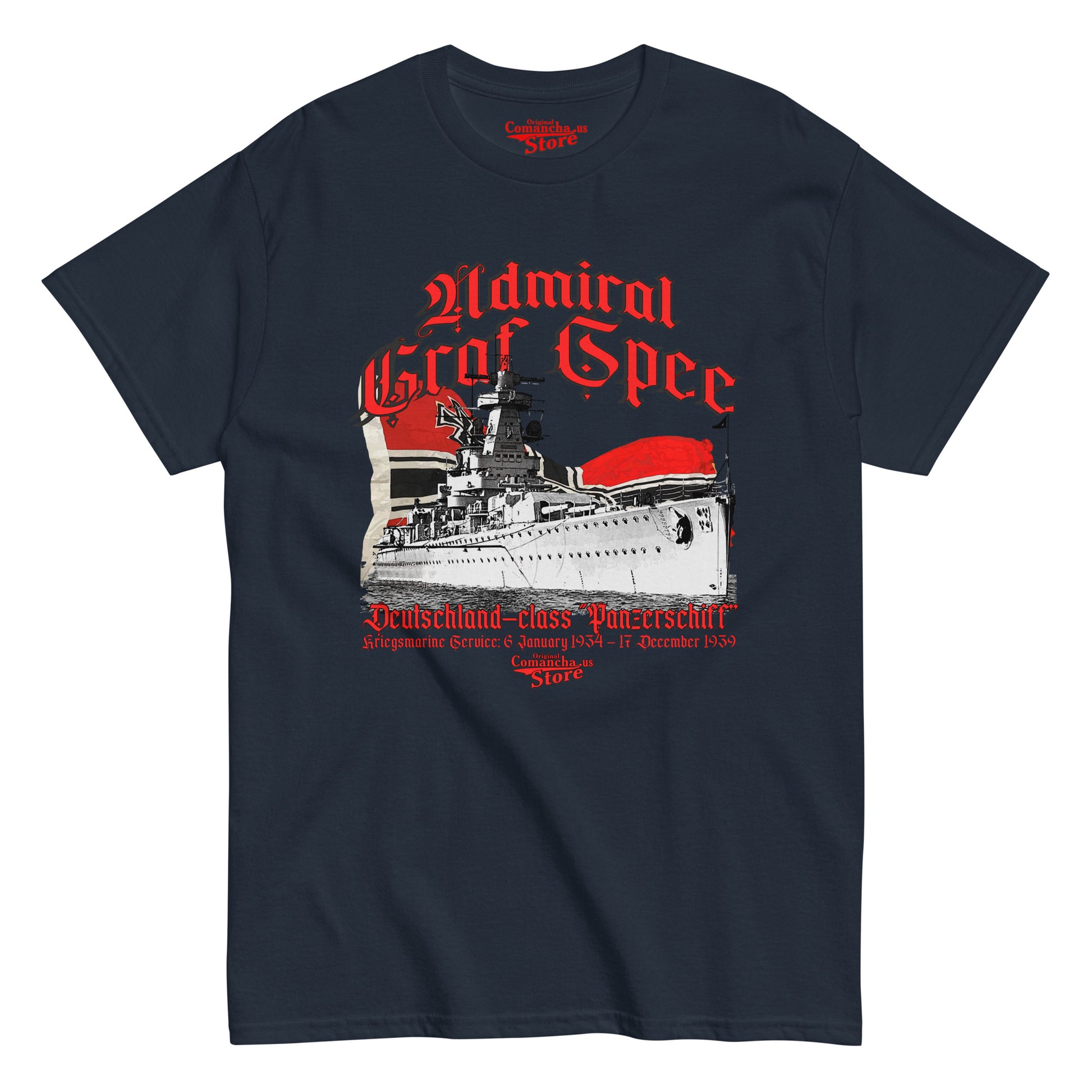Admiral Graf Spee Battleship tee, Comaancha Store, Admiral Graf Spee was a Deutschland-class "Panzerschiff" (armored ship), nicknamed a "pocket battleship" by the British, which served with the Kriegsmarine of Nazi Germany during World War II.