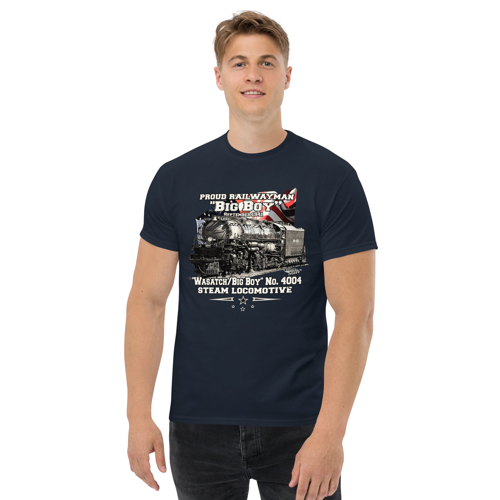 Big Boy No. 4004 T-shirt, Comancha Store, Union Pacific 4884-1 "Wasatch/Big Boy" class number 4004. A huge, simple, coal-fired 4-8-8-4 articulated vehicle.