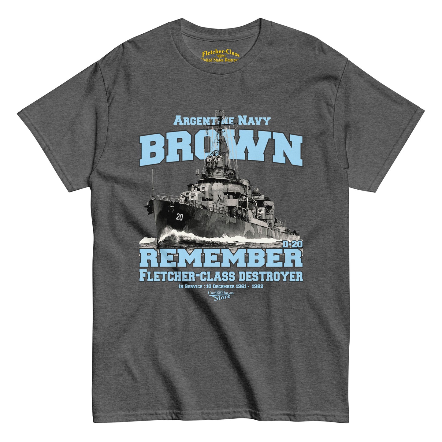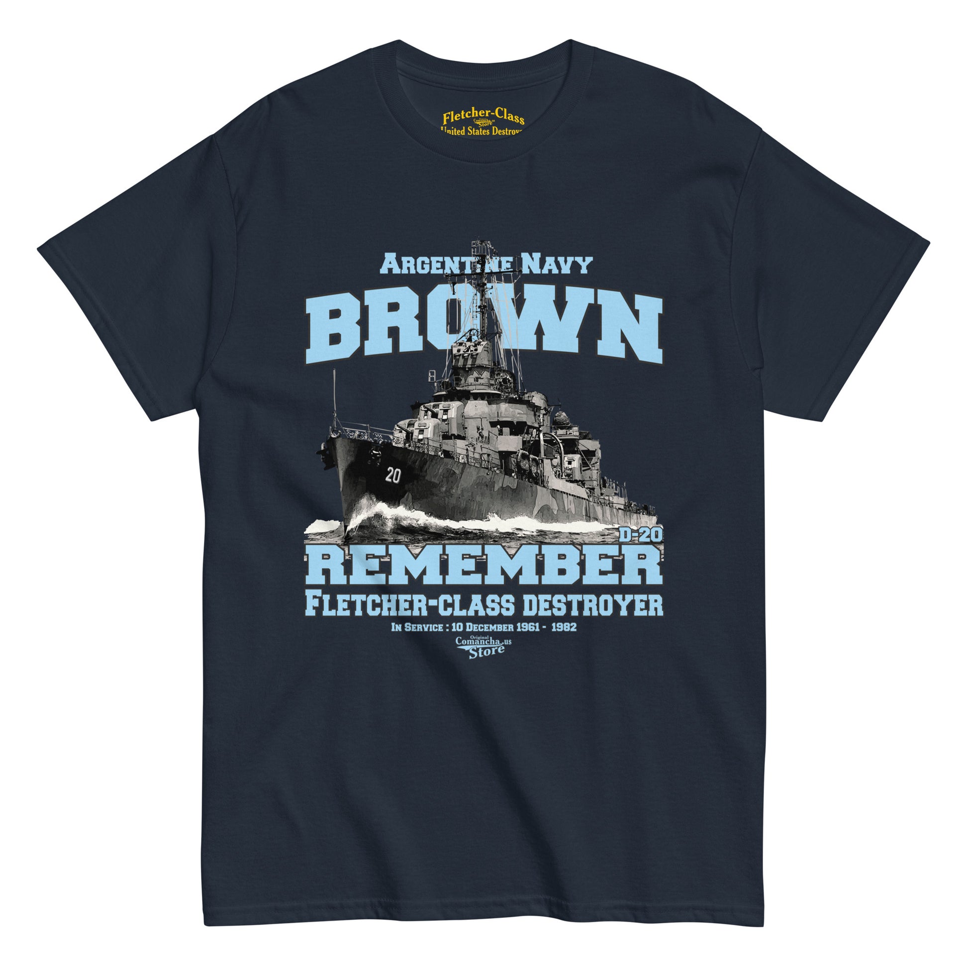 BROWN D20 Destroyer T-shirt, Argentinian Navy Destroyer t-shirt, Comancha Store