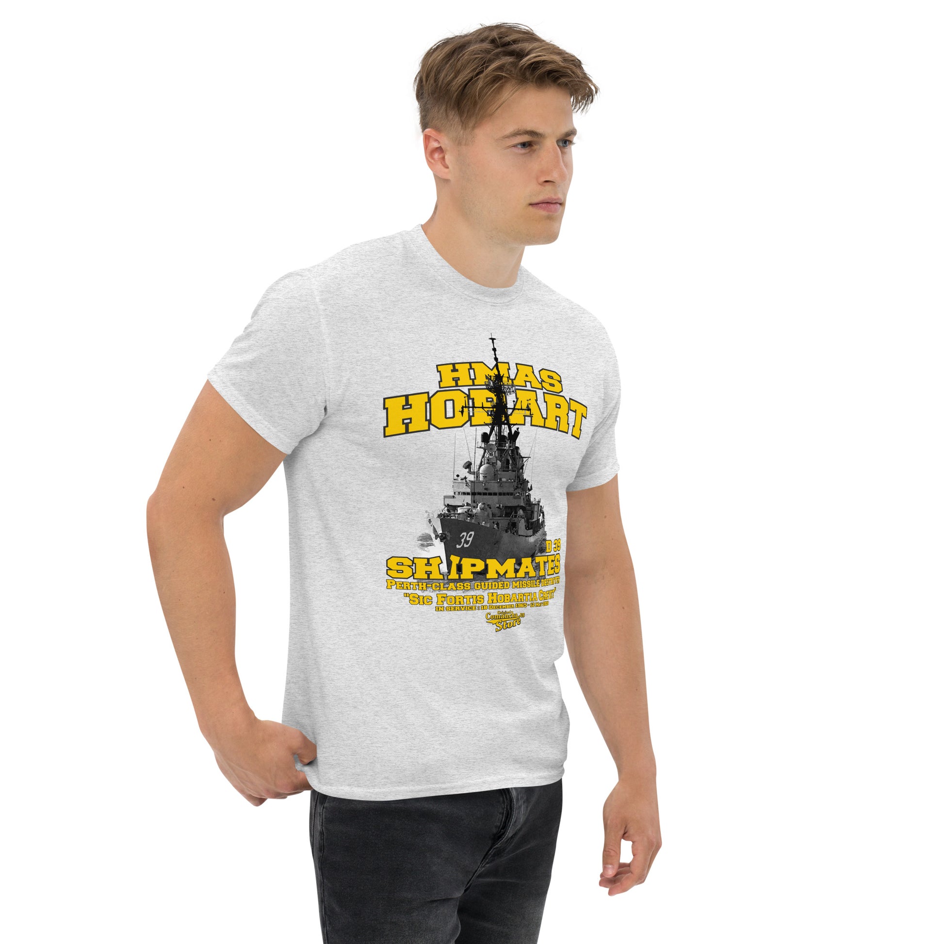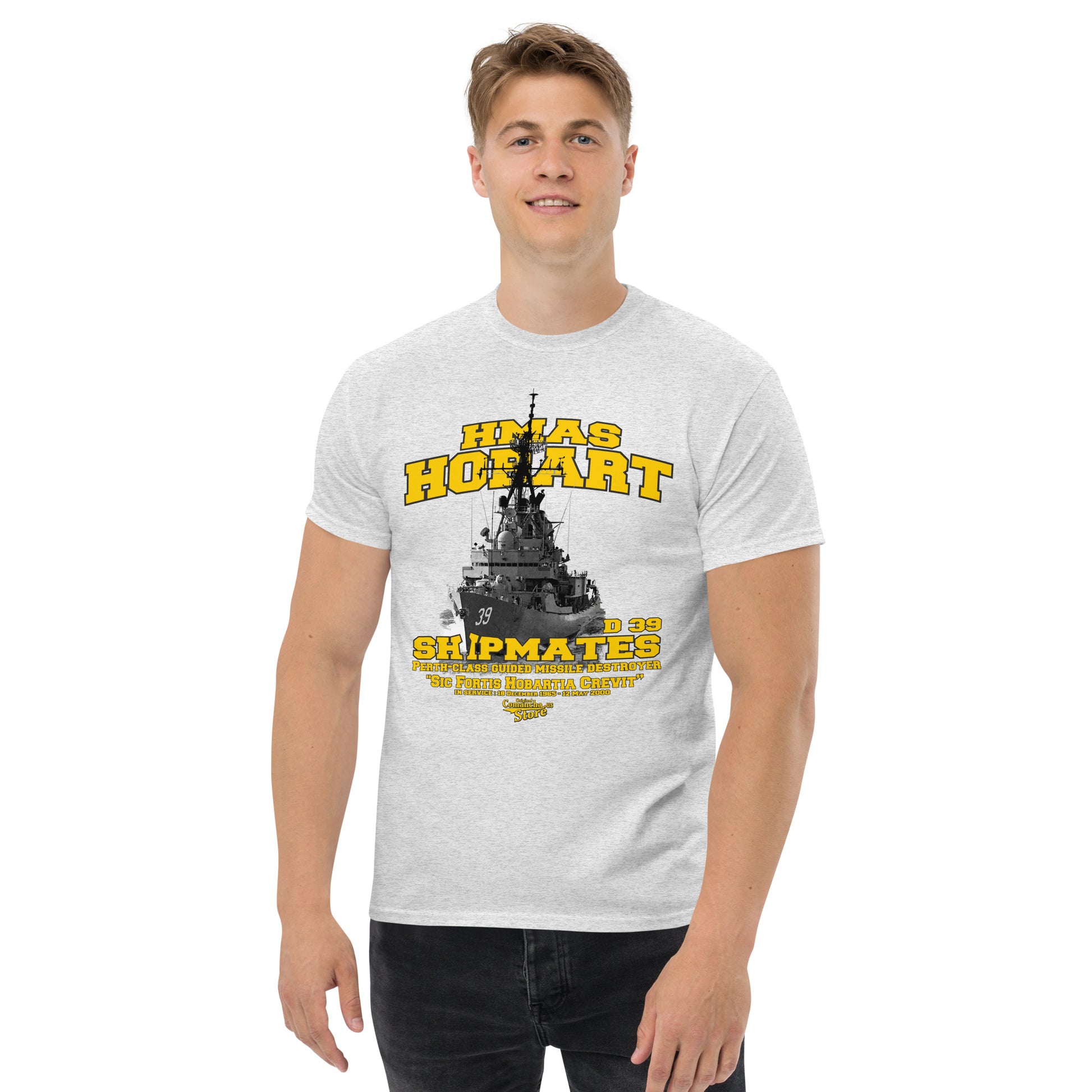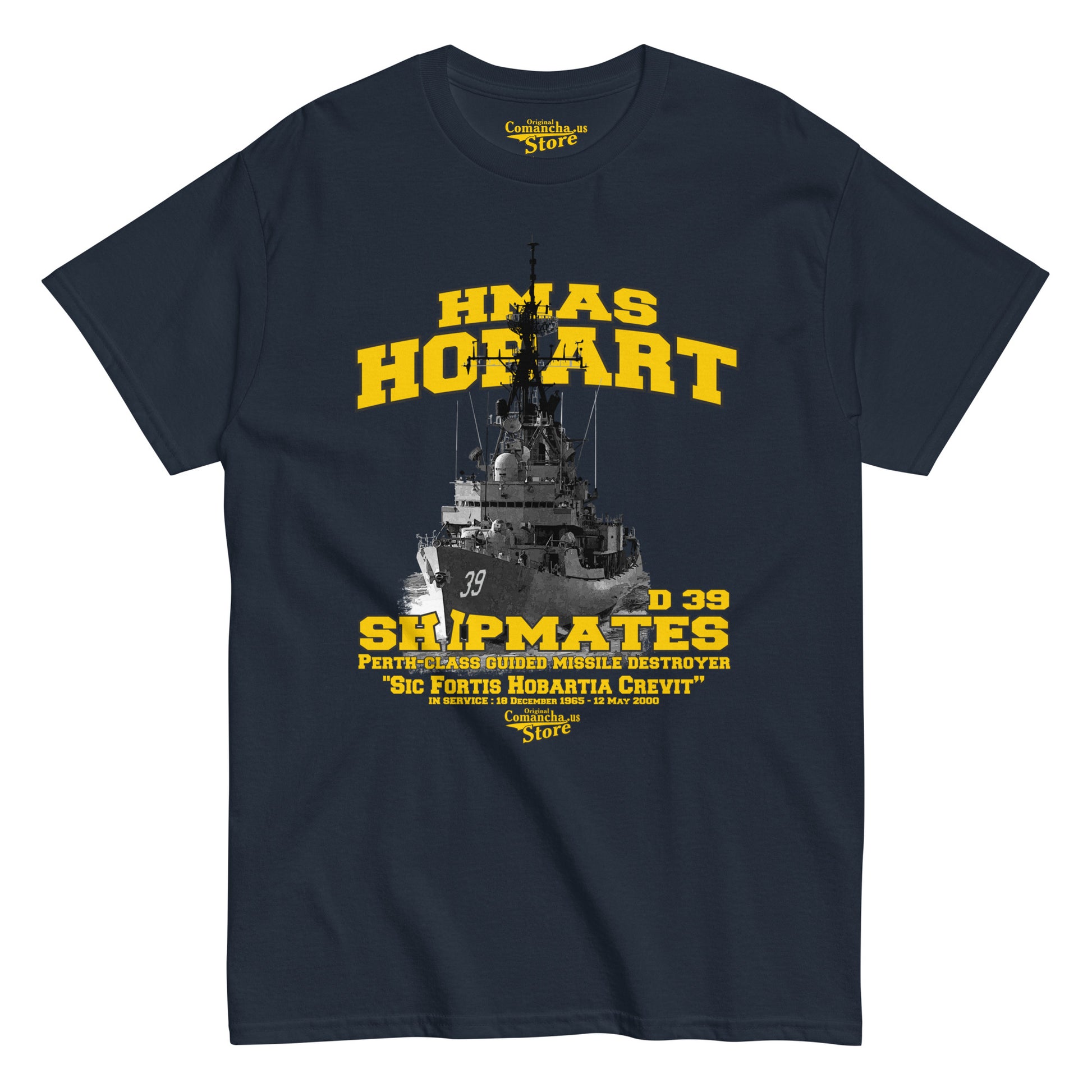HMAS Hobart Shipmates t-shirt, HMAS Hobart D-39 t-shirt destroyer, HMAS Hobart (D 39) was a Perth-class guided missile destroyer of the Royal Australian Navy (RAN). Comancha Graphics Store,