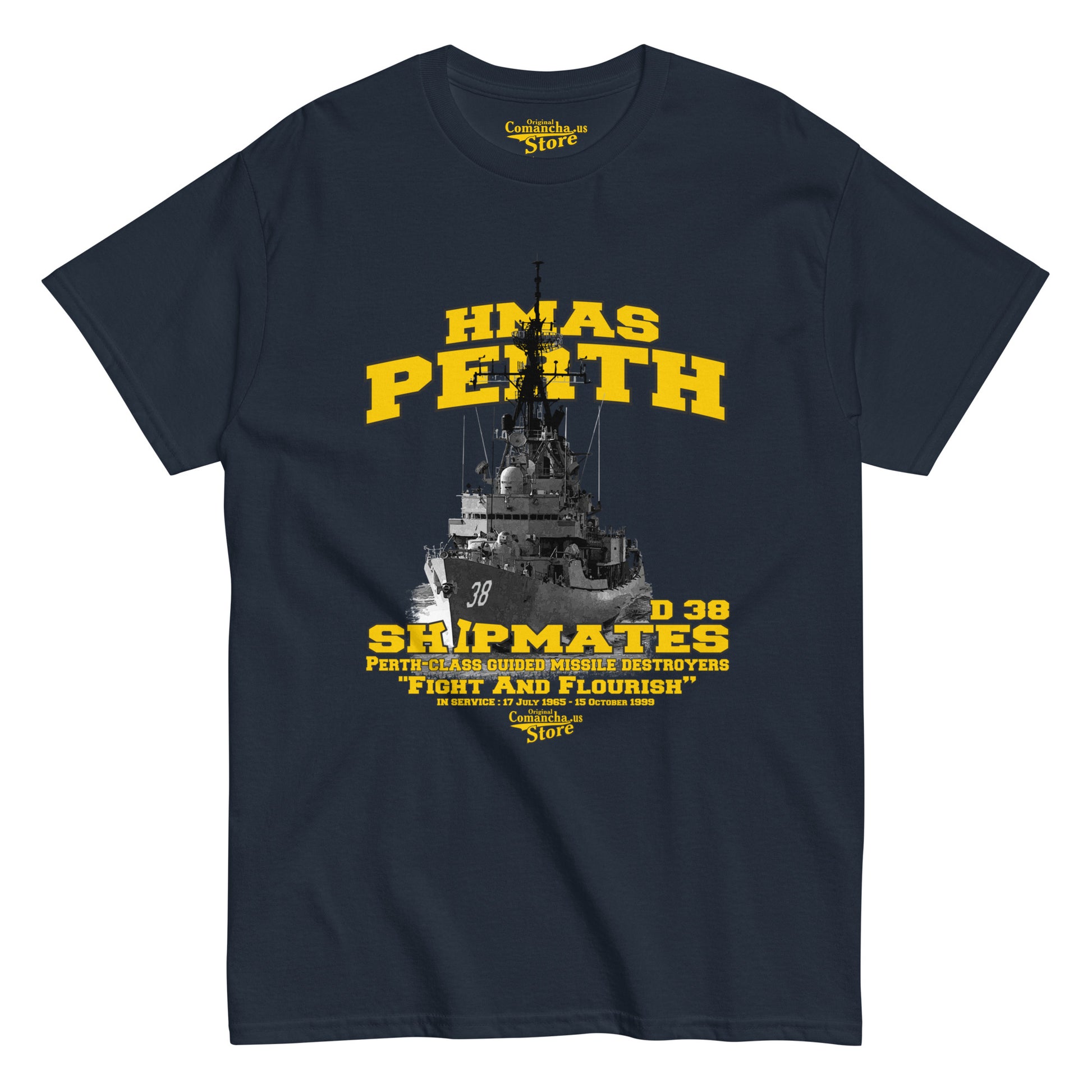 HMAS Perth D-38 T-shirt, HMAS Perth D-38 Shipmates t-shirt, HMAS Perth D 38 Perth-class guided missile destroyer Tee, Comancha Graphics,