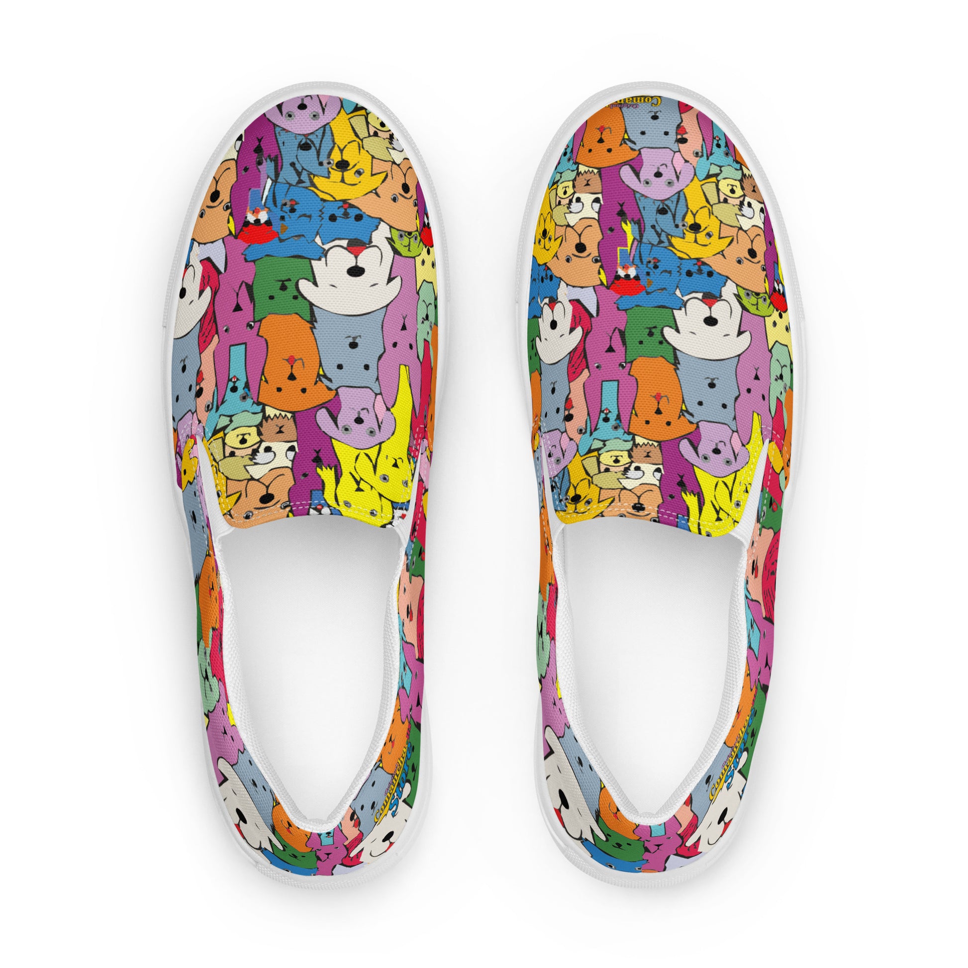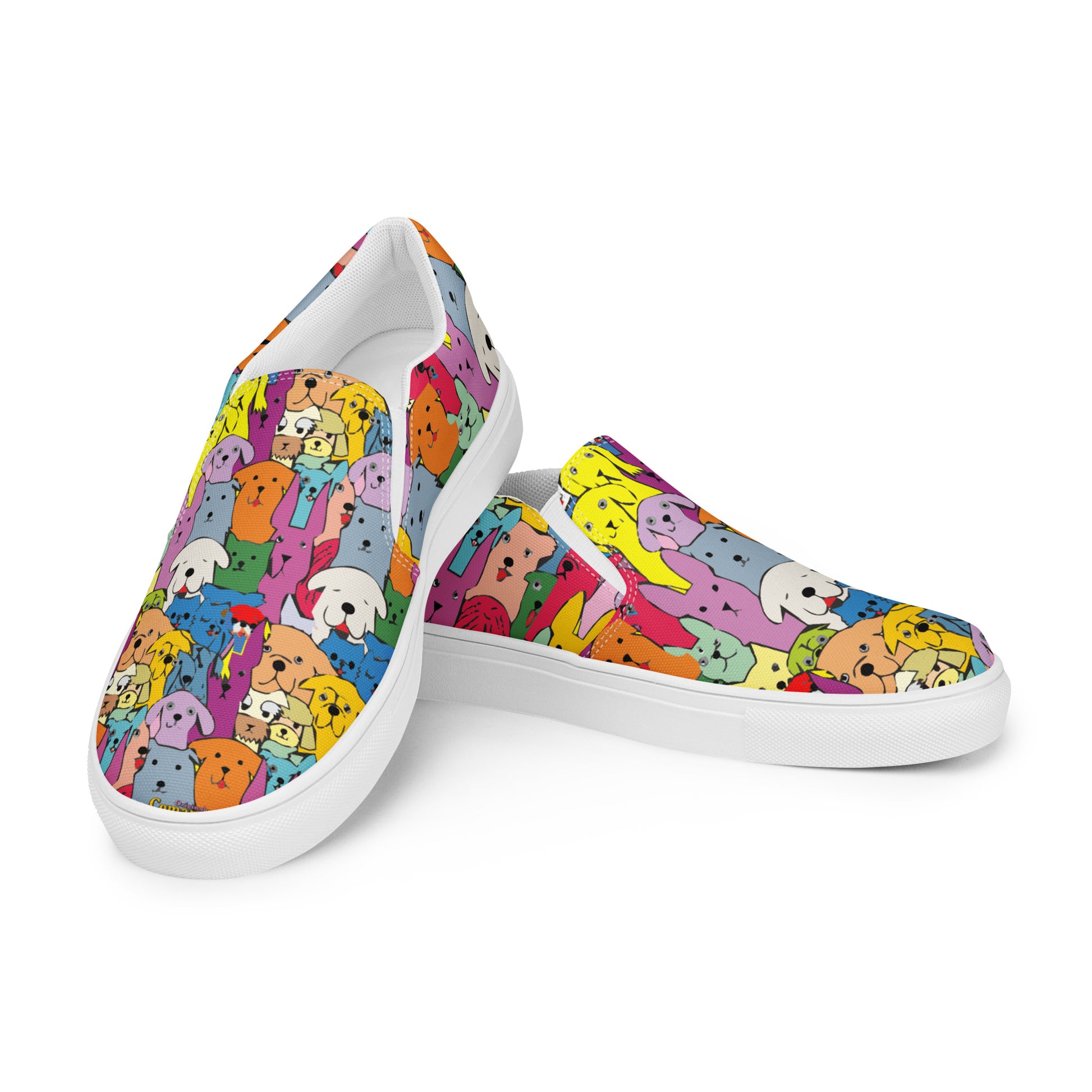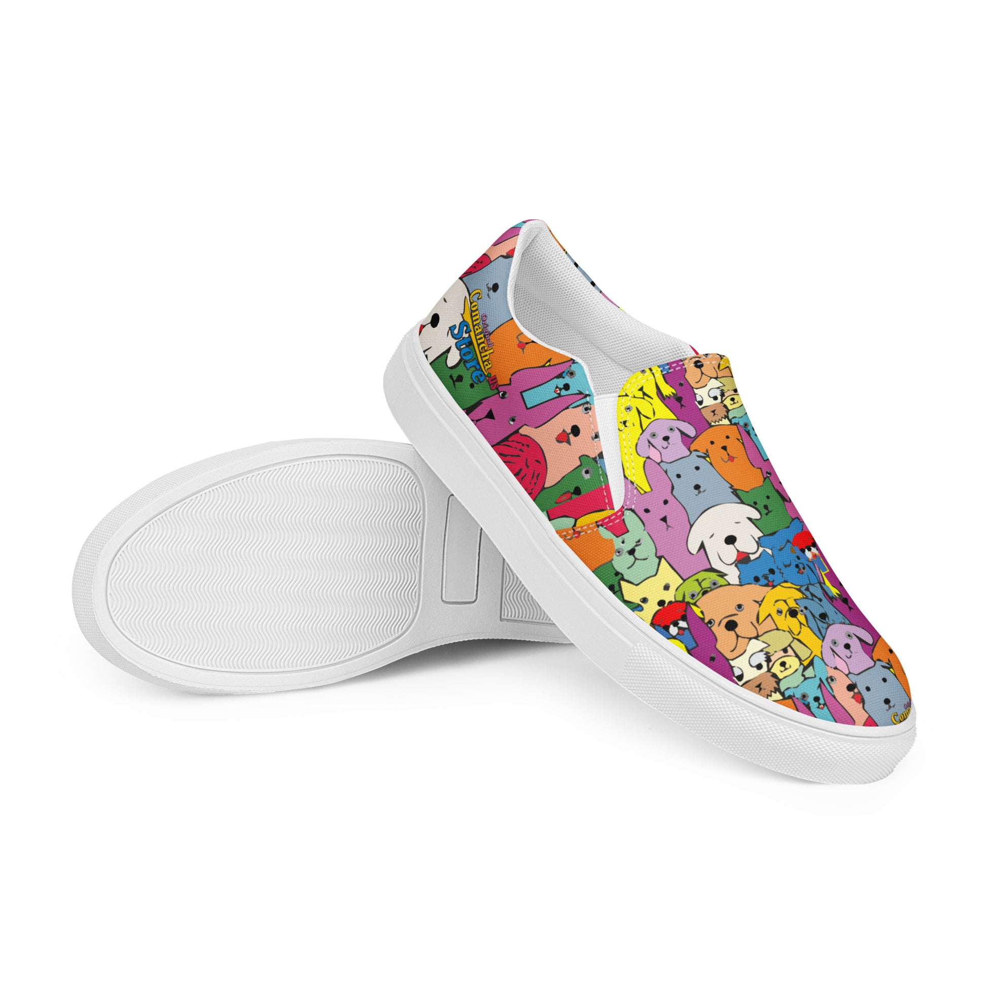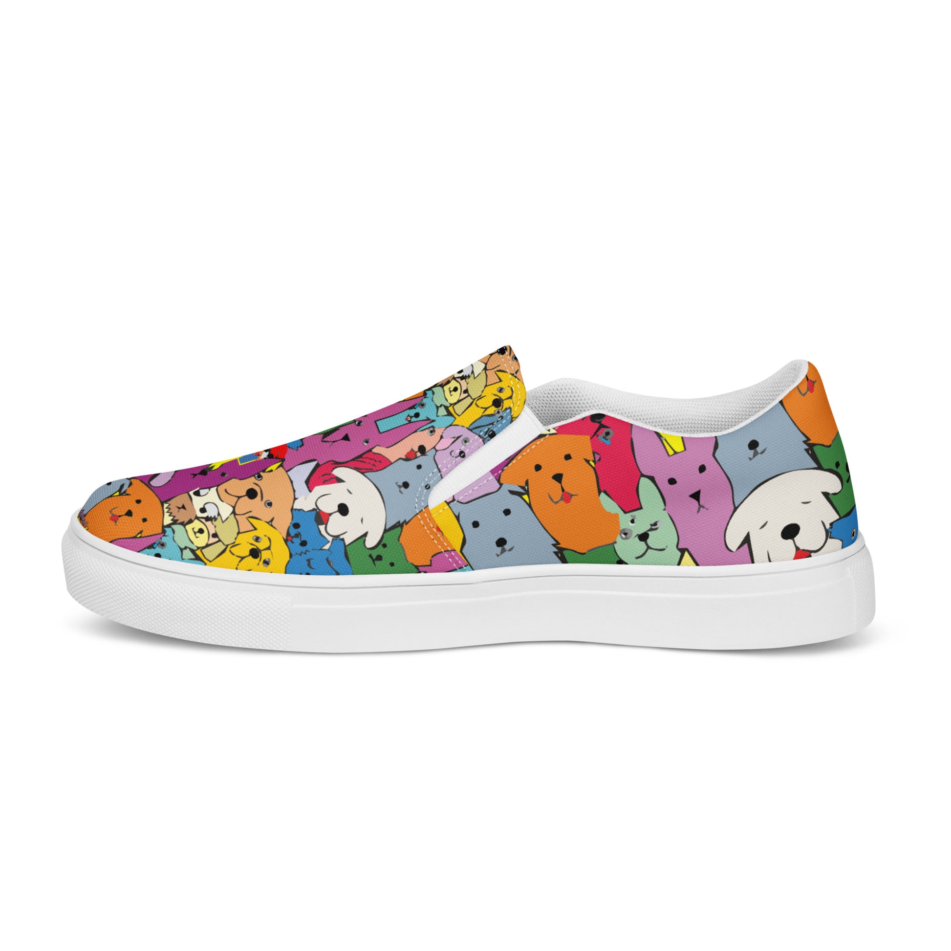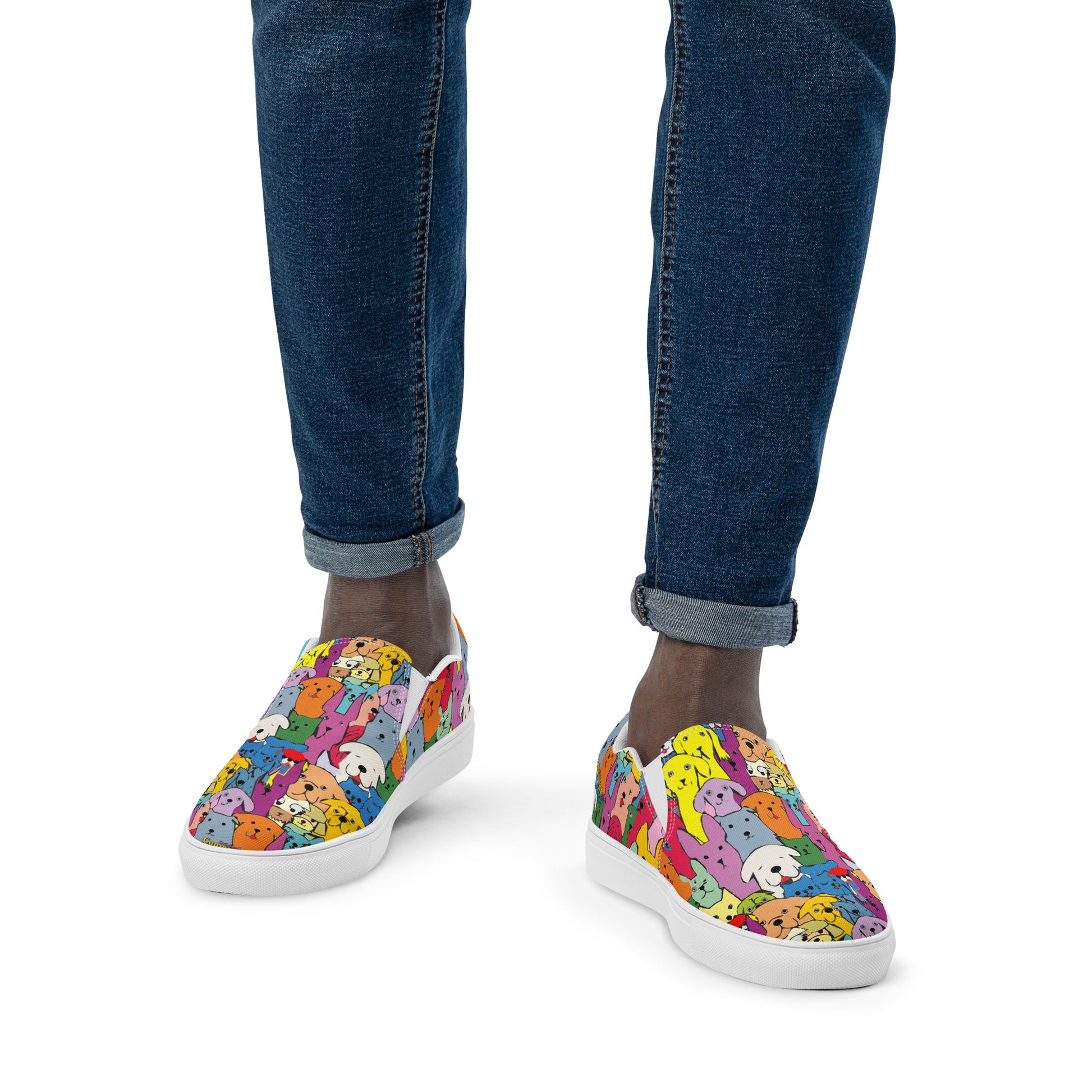 I Love Dogs Men’s slip-on canvas shoes, Made for comfort and ease, these Men’s Slip-On Canvas Shoes are stylish and the ideal piece for completing an outfit. Equipped with removable soft insoles and rubber outsoles, it’s also easy to adjust them for a better fit.