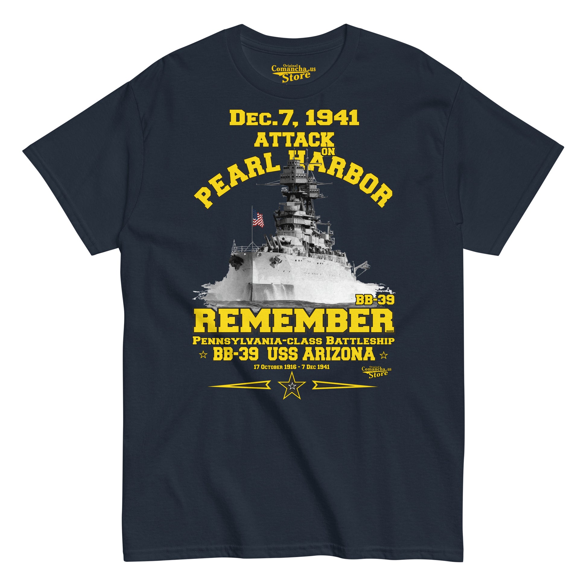 Remember USS Arizona BB-39 T-shirt, USS Arizona BB-39 Battleship T-shirt, USS Arizona was a battleship built for the United States Navy in the mid-1910s. Named in honor of the 48th state, she was the second and last ship in the Pennsylvania class. Comancha Graphics Store,