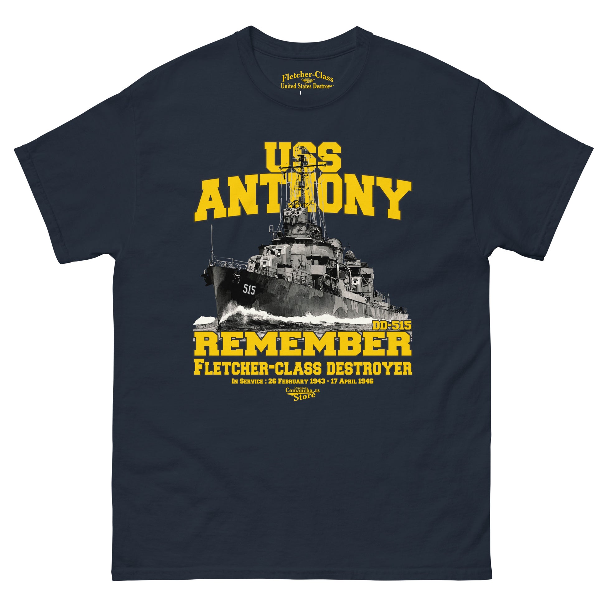USS Anthony DD-515 t-shirt, USS Anthony DD-515 Shipmates t-shirt,USS Anthony Destroyer t-shirt, Comancha Graphics,