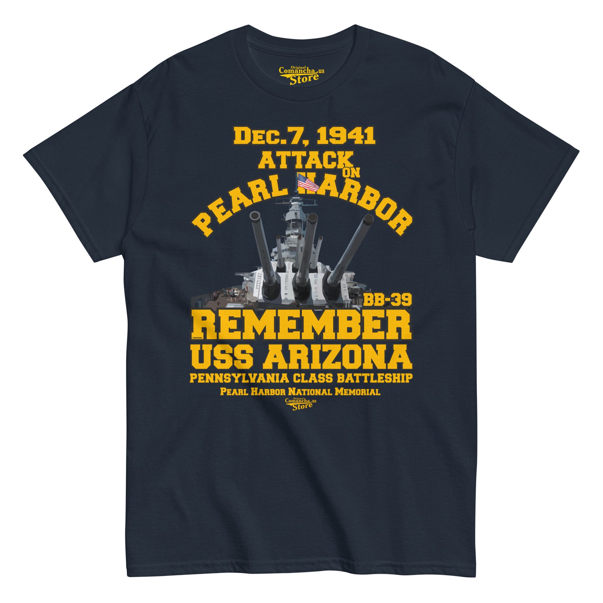 Remember USS Arizona BB-39 T-shirt, USS Arizona BB-39 Battleship T-shirt, USS Arizona was a battleship built for the United States Navy in the mid-1910s. Named in honor of the 48th state, she was the second and last ship in the Pennsylvania class. Comancha Graphics Store,