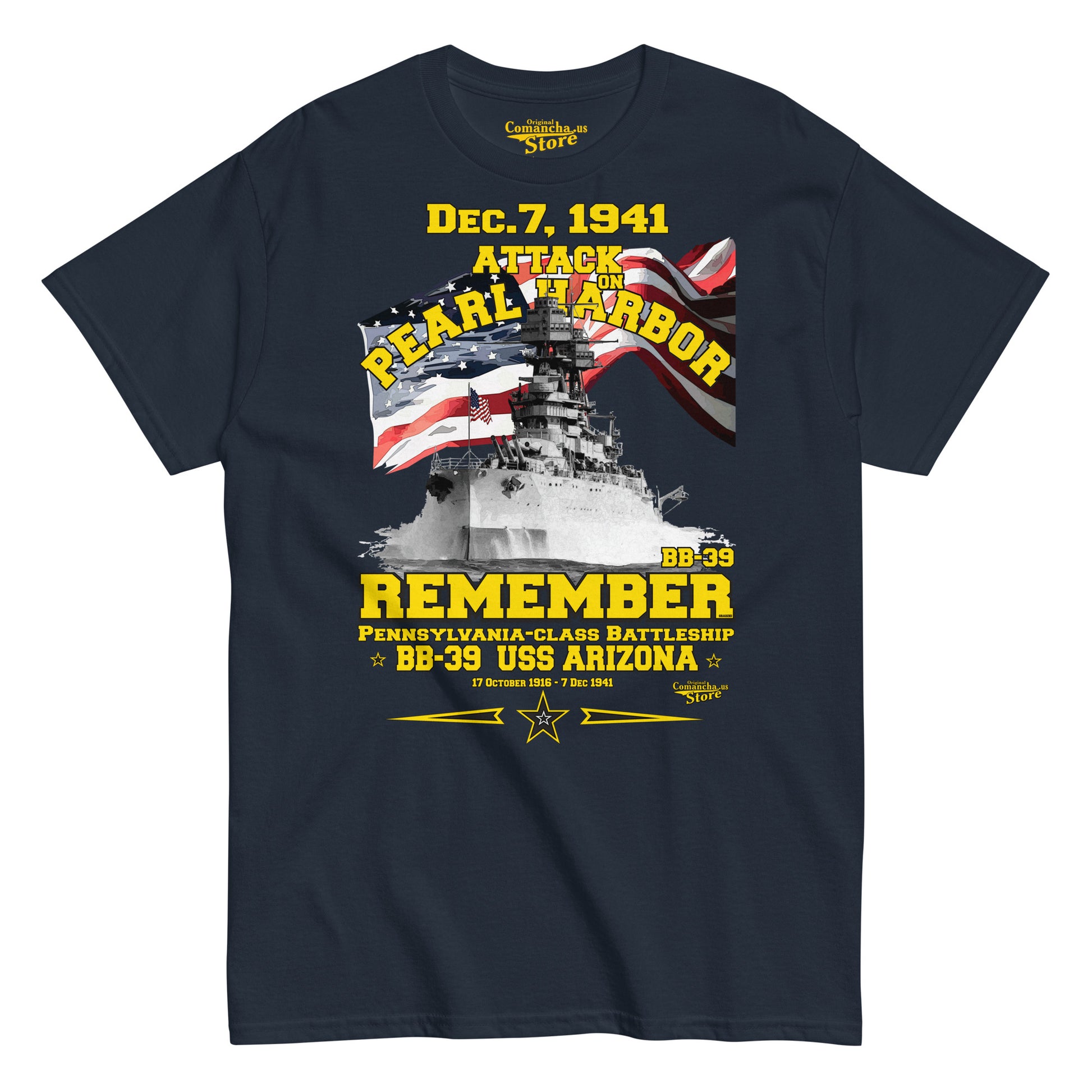 Remember USS Arizona BB-39 T-shirt, USS Arizona BB-39 Battleship T-shirt, USS Arizona was a battleship built for the United States Navy in the mid-1910s. Named in honor of the 48th state, she was the second and last ship in the Pennsylvania class. Comancha Graphics Store,