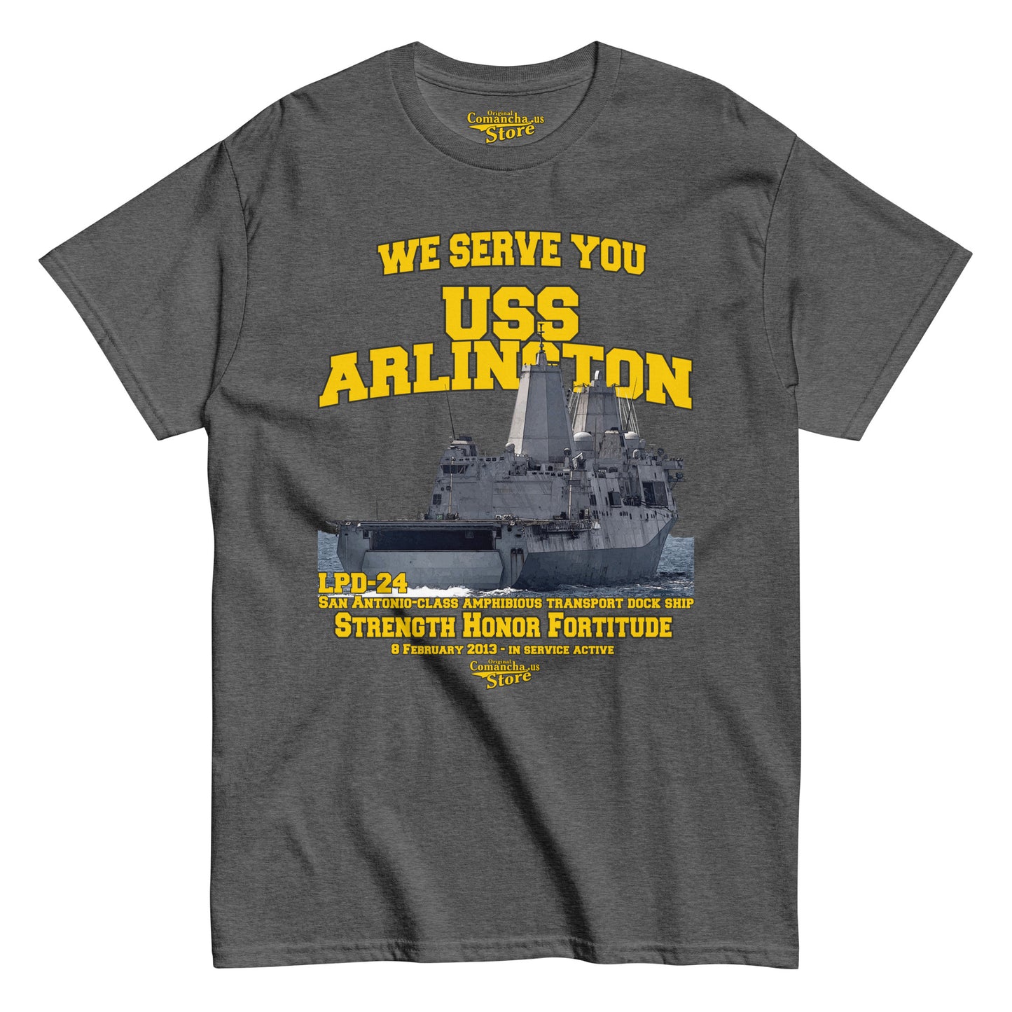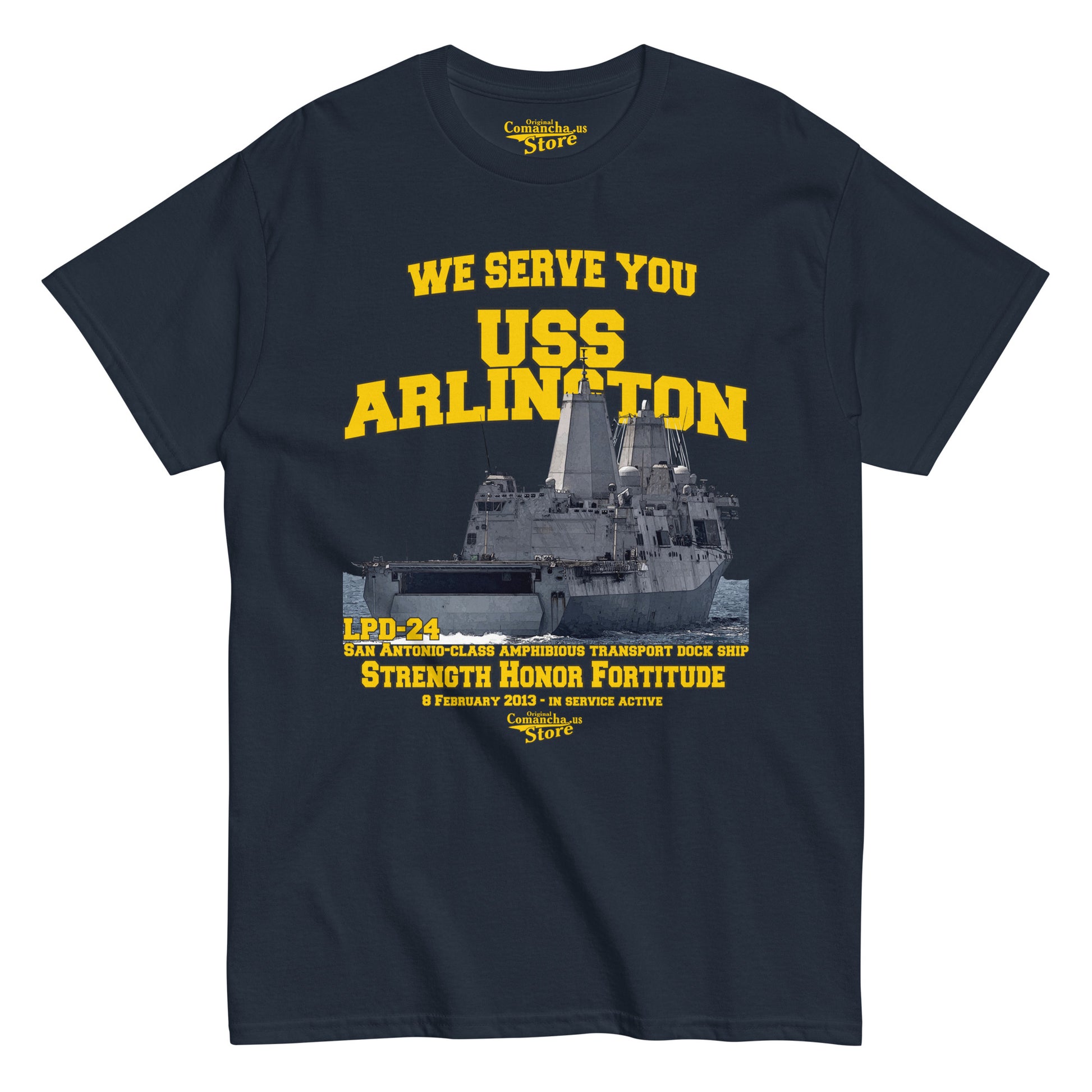 USS Arlington LPD-24 Shipmates t-shirt, USS Arlington (LPD-24), a San Antonio-class amphibious transport dock, is the third ship of the United States Navy, Comancha T-shirts Store,