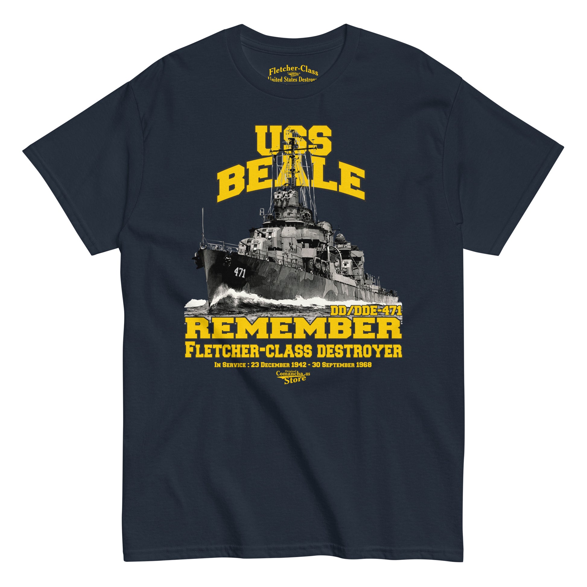 USS Beale DD/DDE-471 destroyer t-shirt, USS Beale (DD/DDE-471), a Fletcher-class destroyer, was the second ship of the United States Navy to be named for Lieutenant Edward Fitzgerald Beale. Comancha Store.