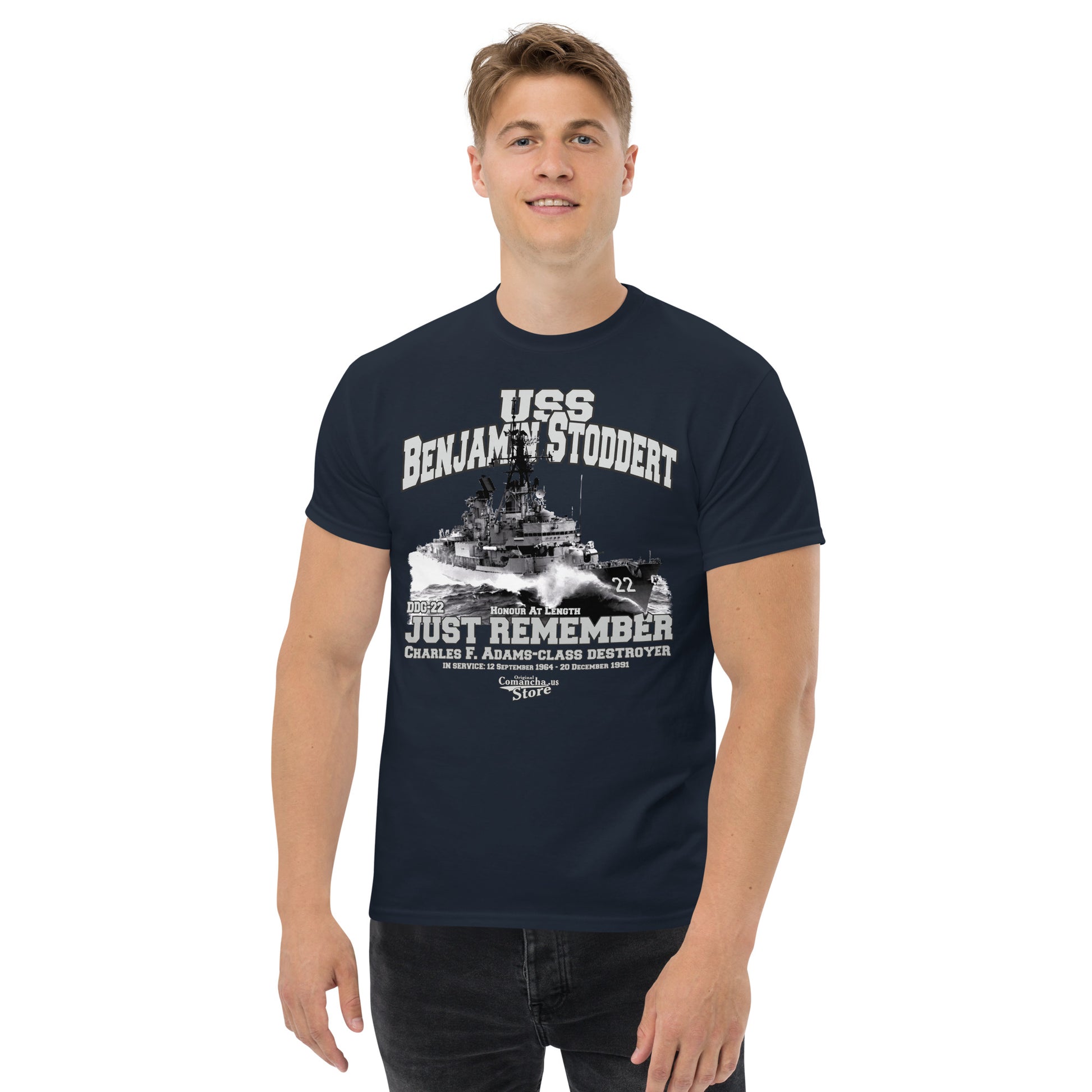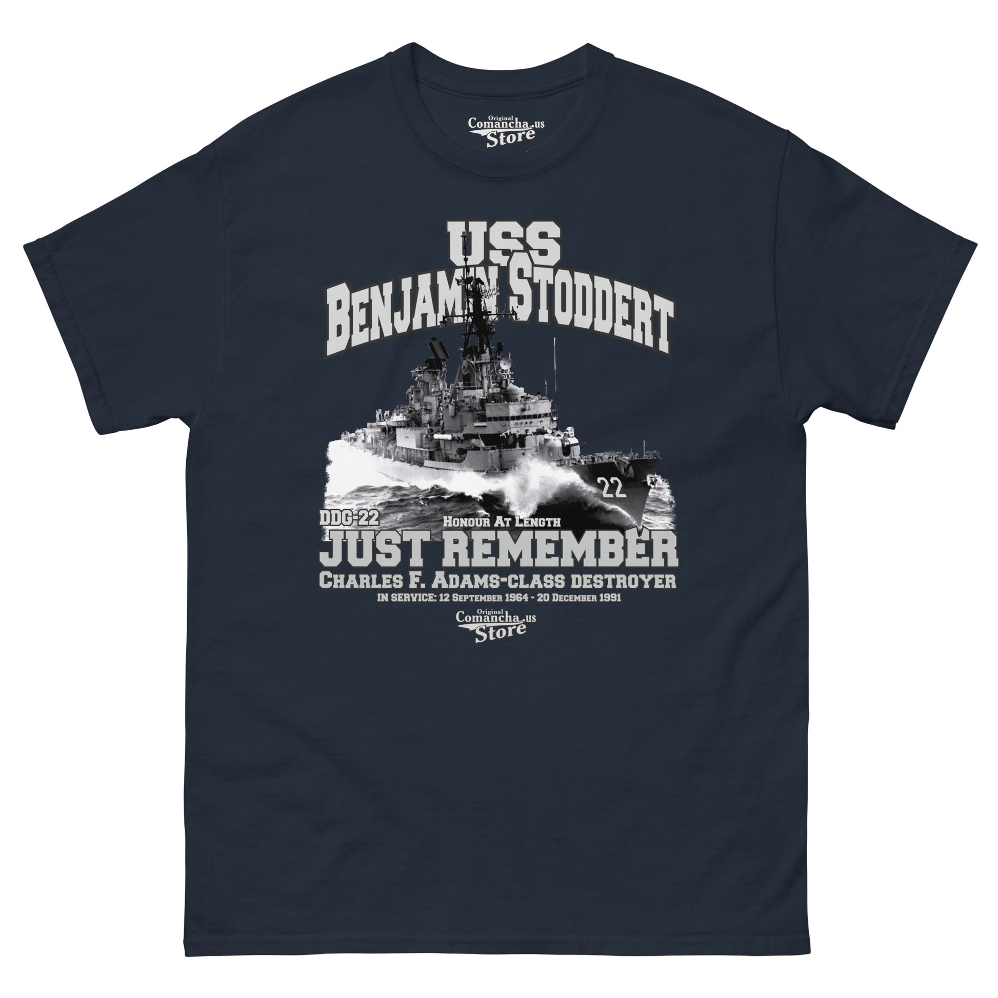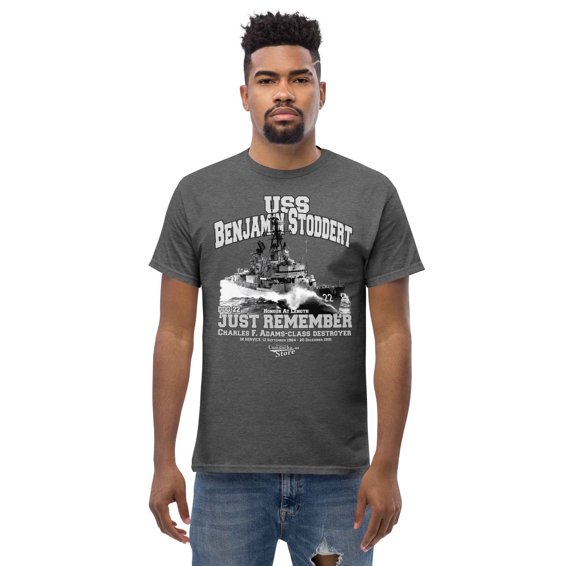 USS Benjamin Stoddert DDG-22 T-shirt, The 100% cotton men's classic tee will help you land a more structured look. It sits nicely, maintains sharp lines around the edges, and goes perfectly with layered streetwear outfits. Plus, it's extra trendy now!