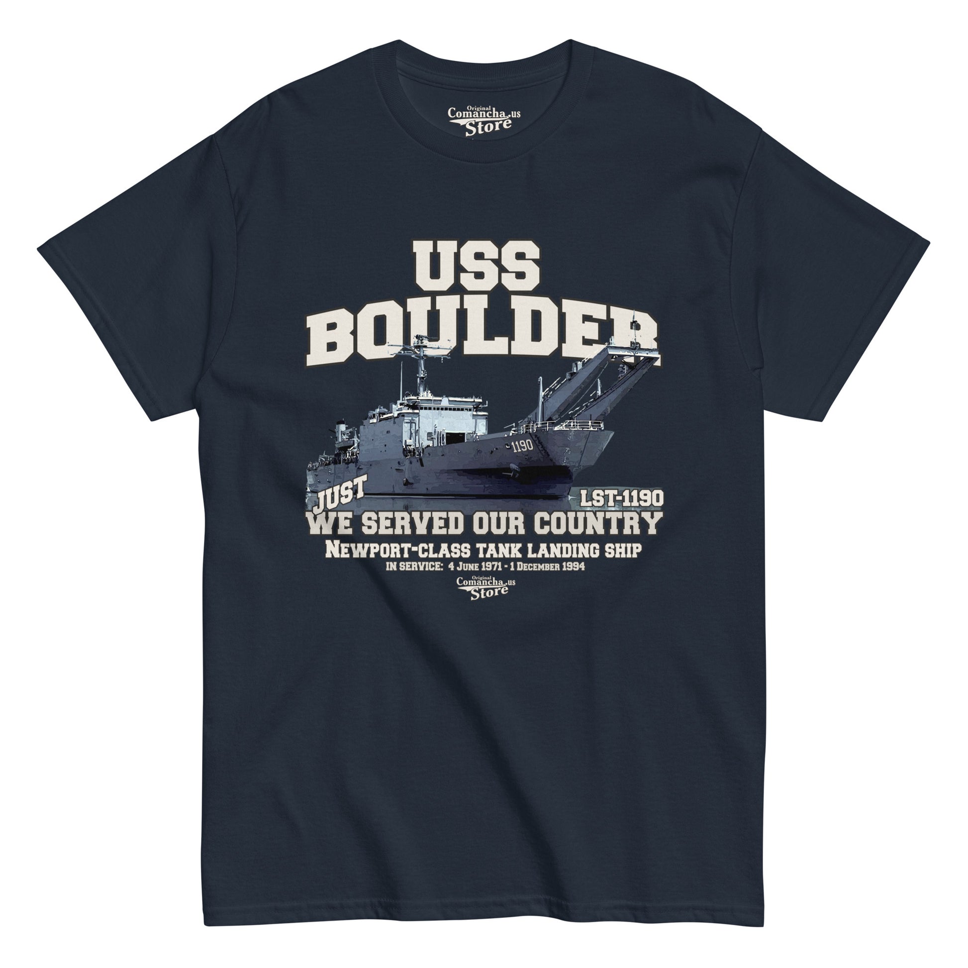 USS Boulder LST-1190 Shipmates t-shirt, USS Boulder (LST-1190) was the twelfth of twenty Newport-class tank landing ships of the United States Navy (USN) which replaced the traditional bow door-design tank landing ships (LSTs), Comancha T-shirts Store,