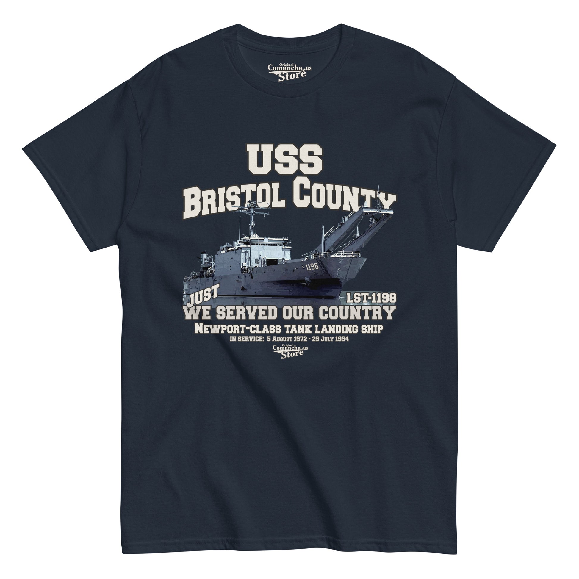 USS Bristol County LST-1198 t-shirt, USS Bristol County Shipmates t-shirt, USS Bristol County (LST-1198) was the last of the twenty Newport-class tank landing ships of the United States Navy, Comancha T-shirts Store,