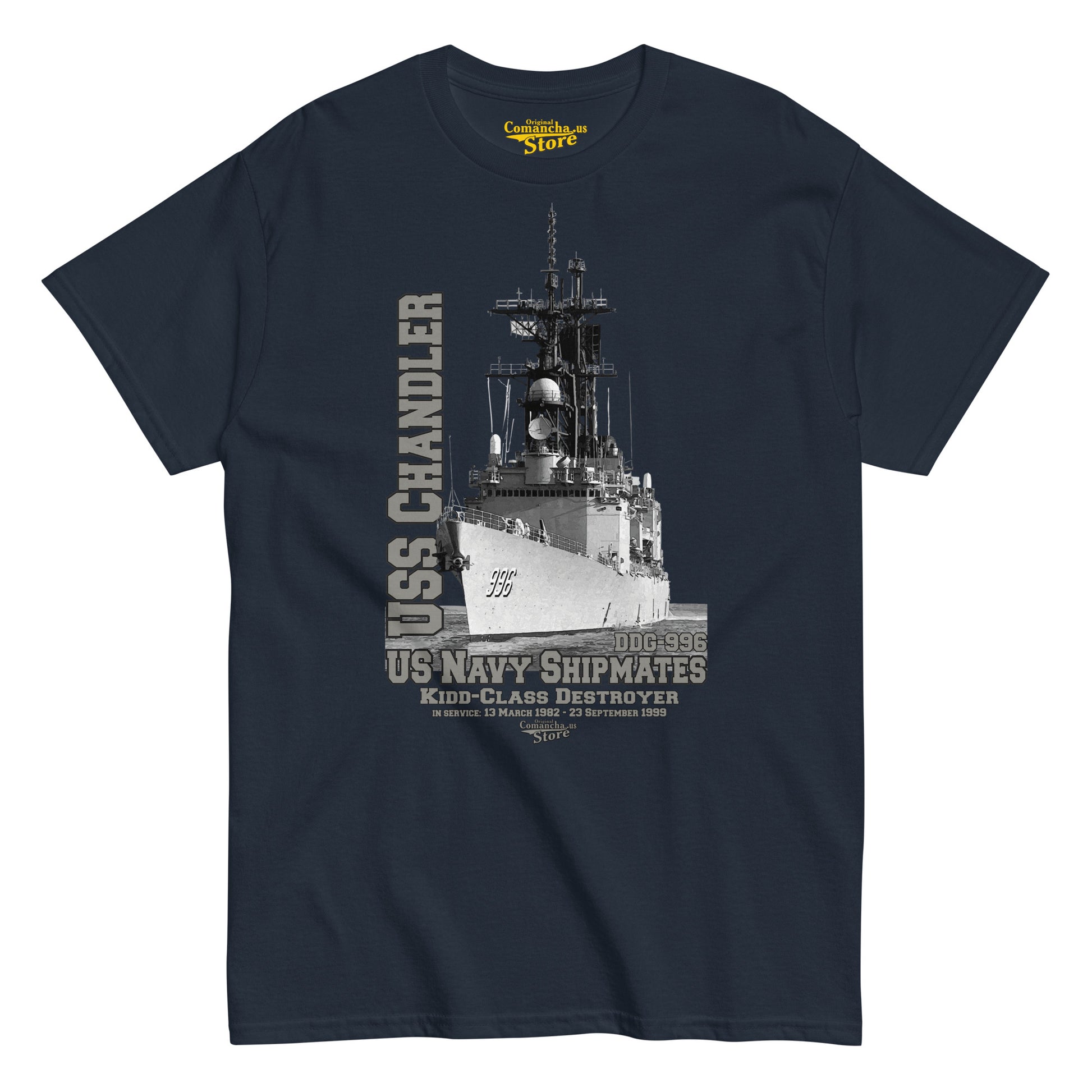 USS Chandler DDG-996 tee, USS Chandler (DDG-996) was the final ship in the Kidd class of guided-missile destroyers operated by the U.S. Navy, Comancha Graphics,