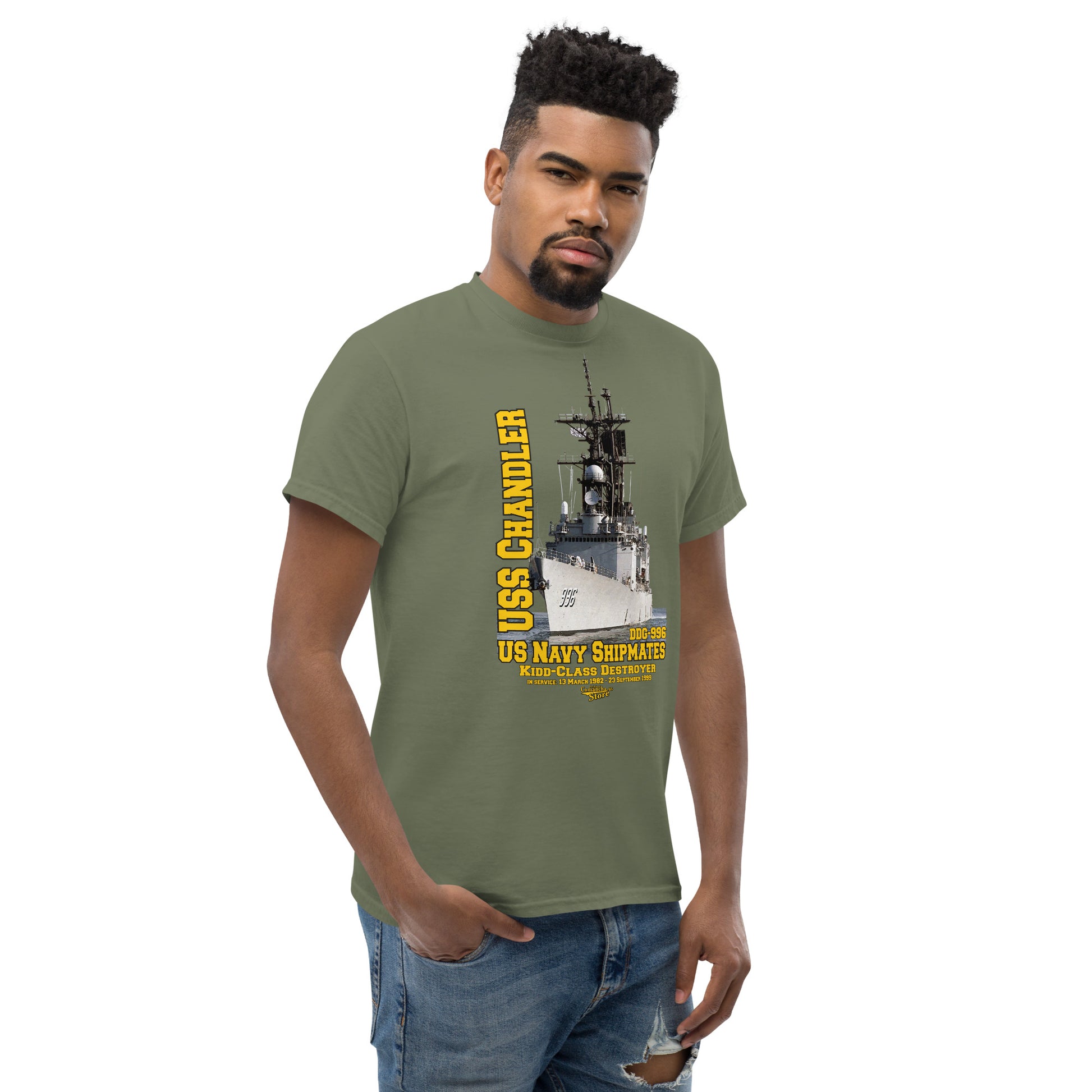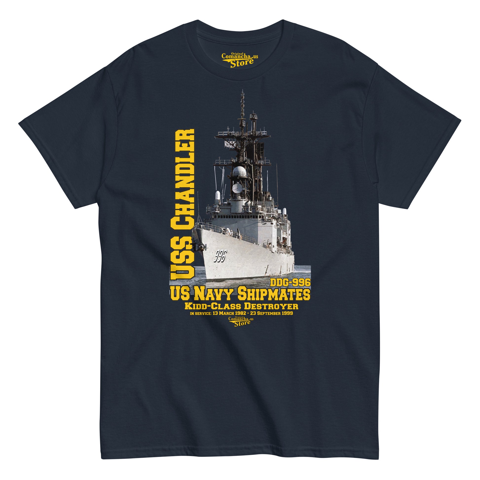 USS Chandler DDG-996 tee, USS Chandler (DDG-996) was the final ship in the Kidd class of guided-missile destroyers operated by the U.S. Navy, Comancha Graphics,