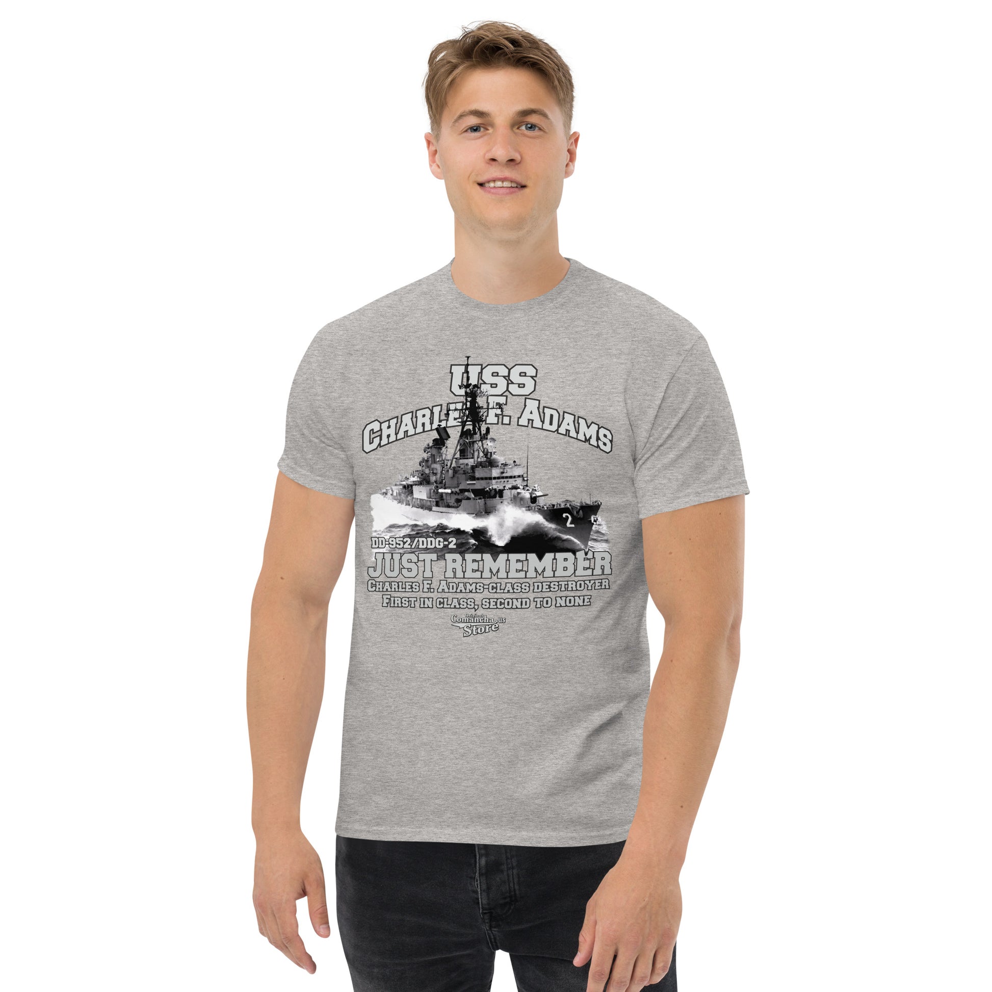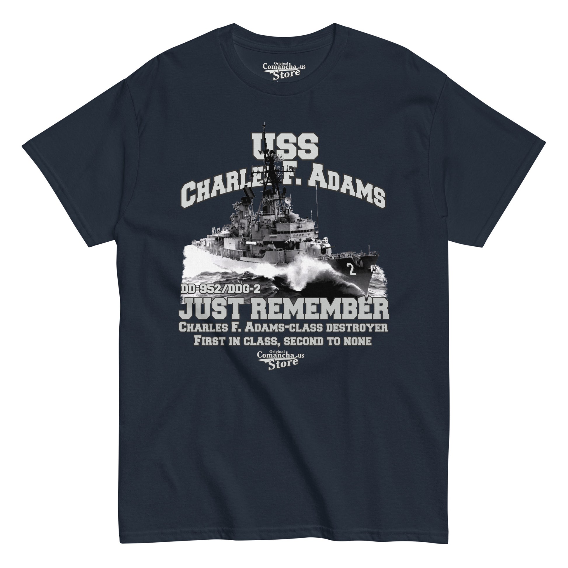 USS Charles F. Adams DDG-2 T-shirt, USS Charles F. Adams T-shirt, USS Charles F. Adams DD-952/DDG-2 lead ship of her class of guided missile destroyers of the United States Navy. Comancha Graphics,