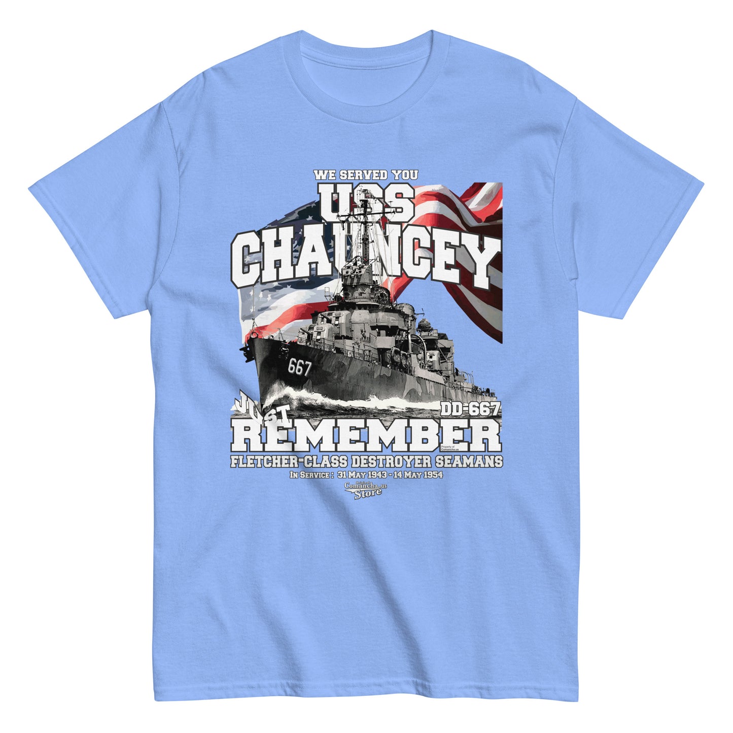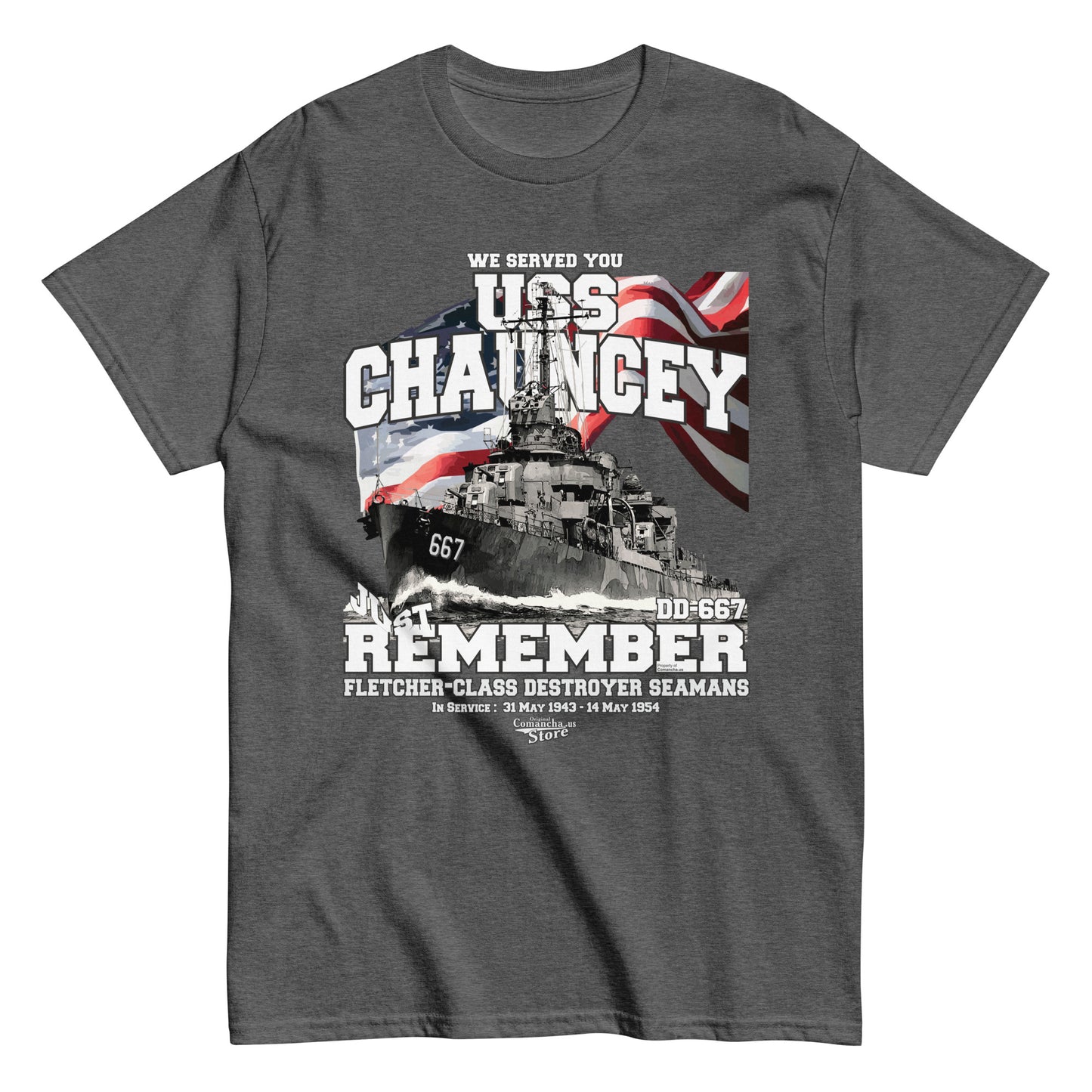 USS Chauncey DD-667 destroyer t-shirt, USS Chauncey (DD-667) was a Fletcher-class destroyer of the United States Navy, Comancha Store,