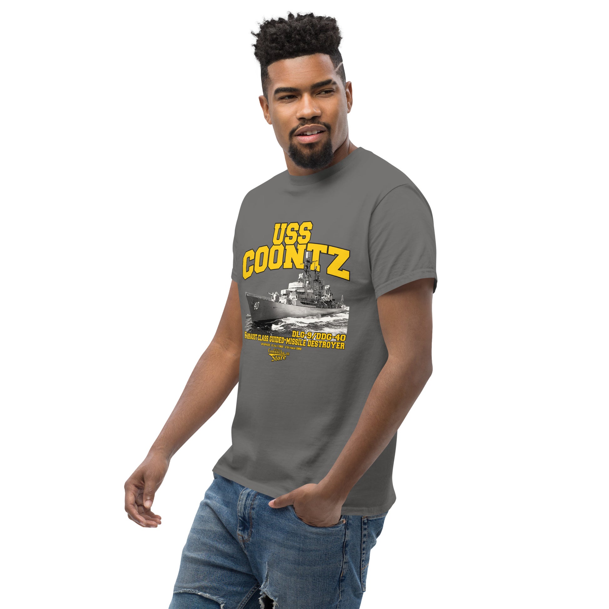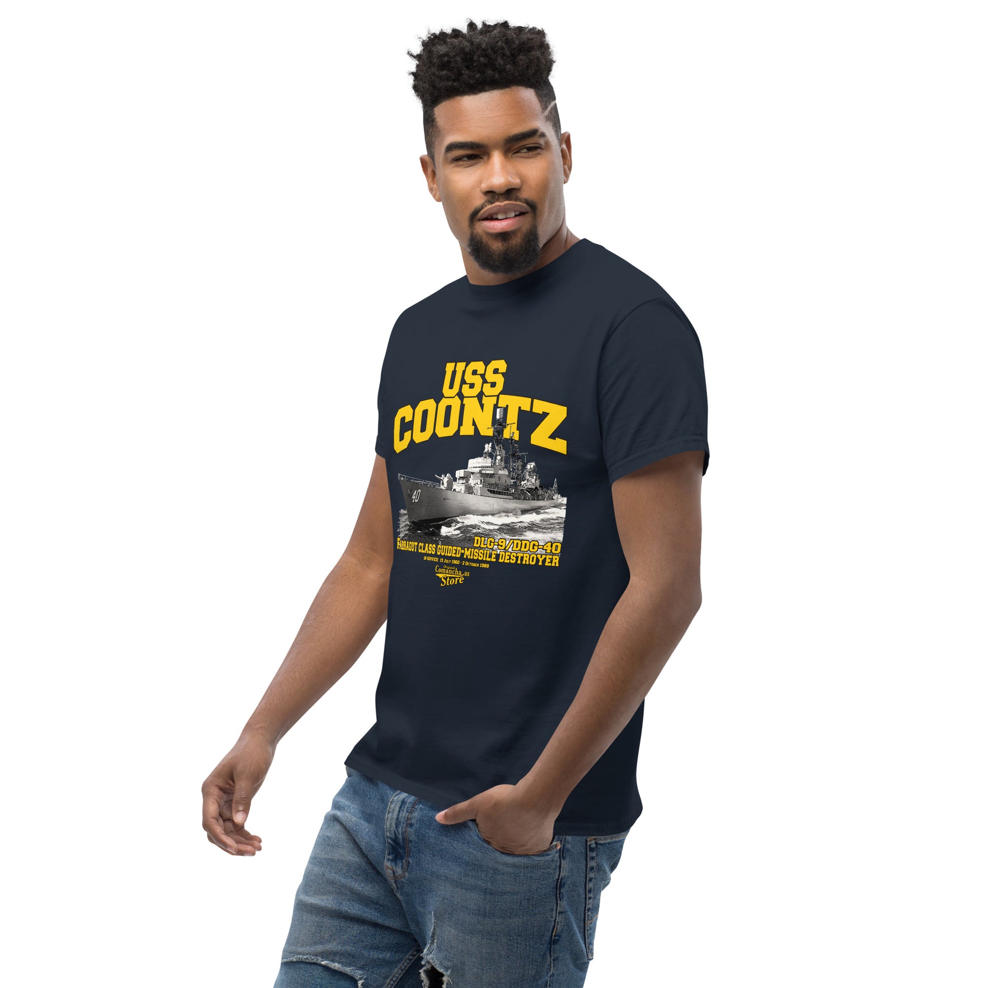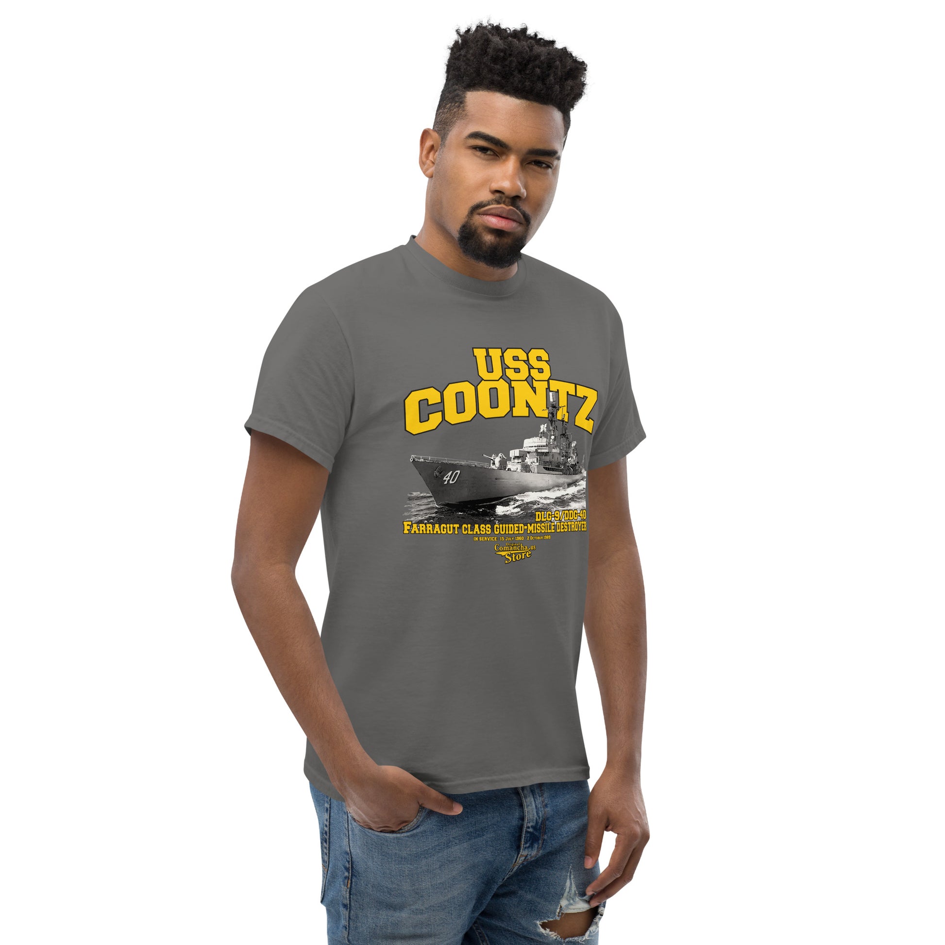 USS Coontz t-shirt, USS Coontz DLG-9 tee, USS Coontz DLG-9/DDG-40 was a Farragut-class destroyer leader/frigate in the United States Navy. Comancha Graphics,