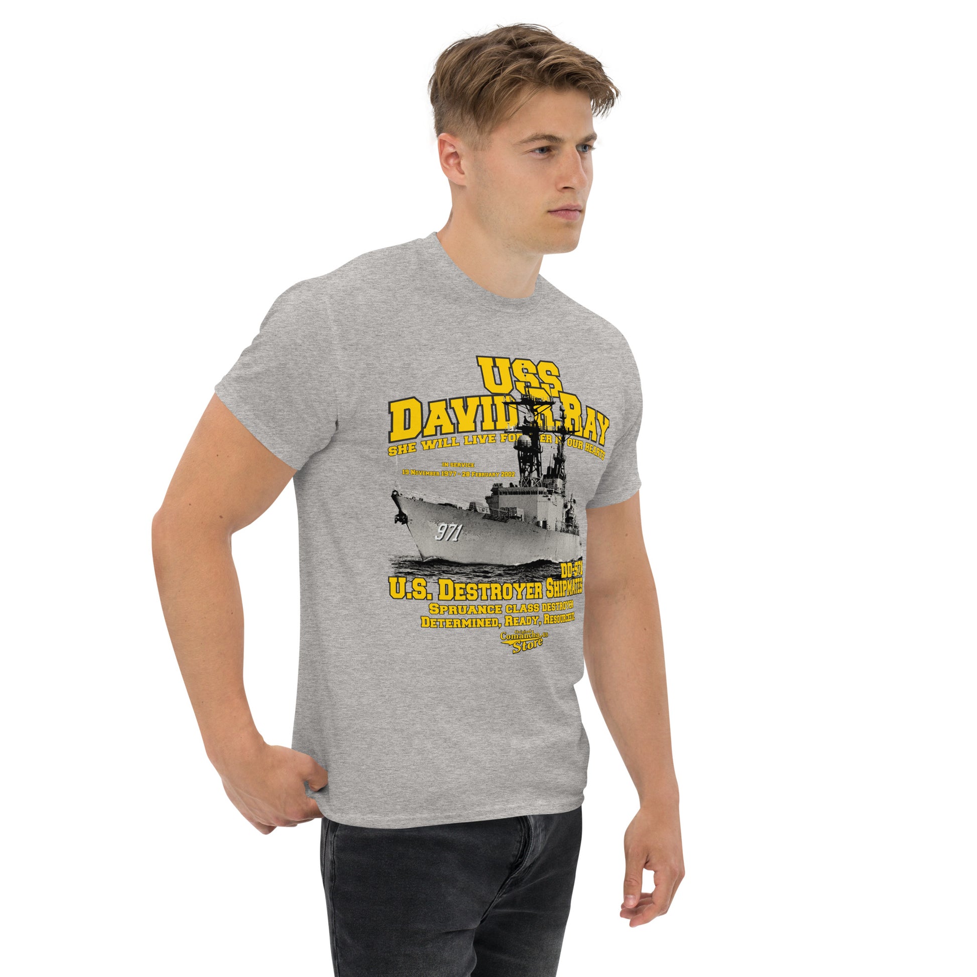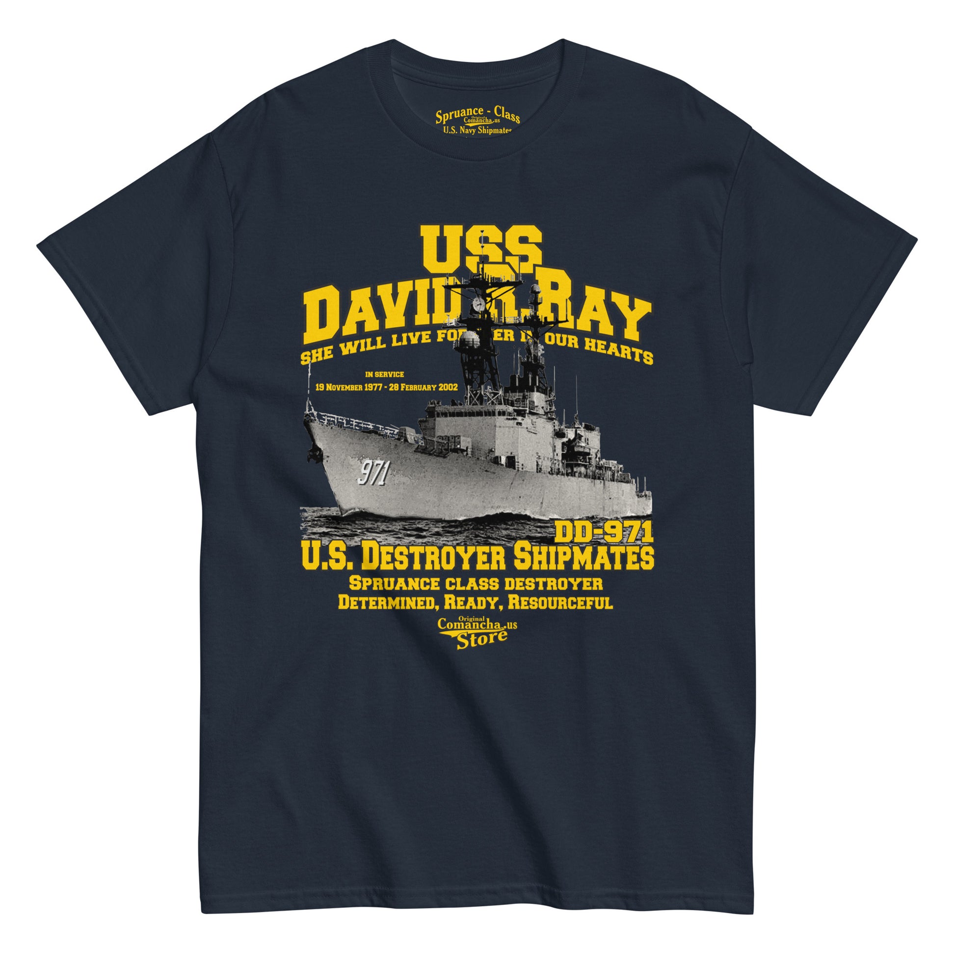 USS David R. Ray Shipmates T-shirt, USS David R. Ray (DD-971), was a Spruance-class destroyer named for United States Navy