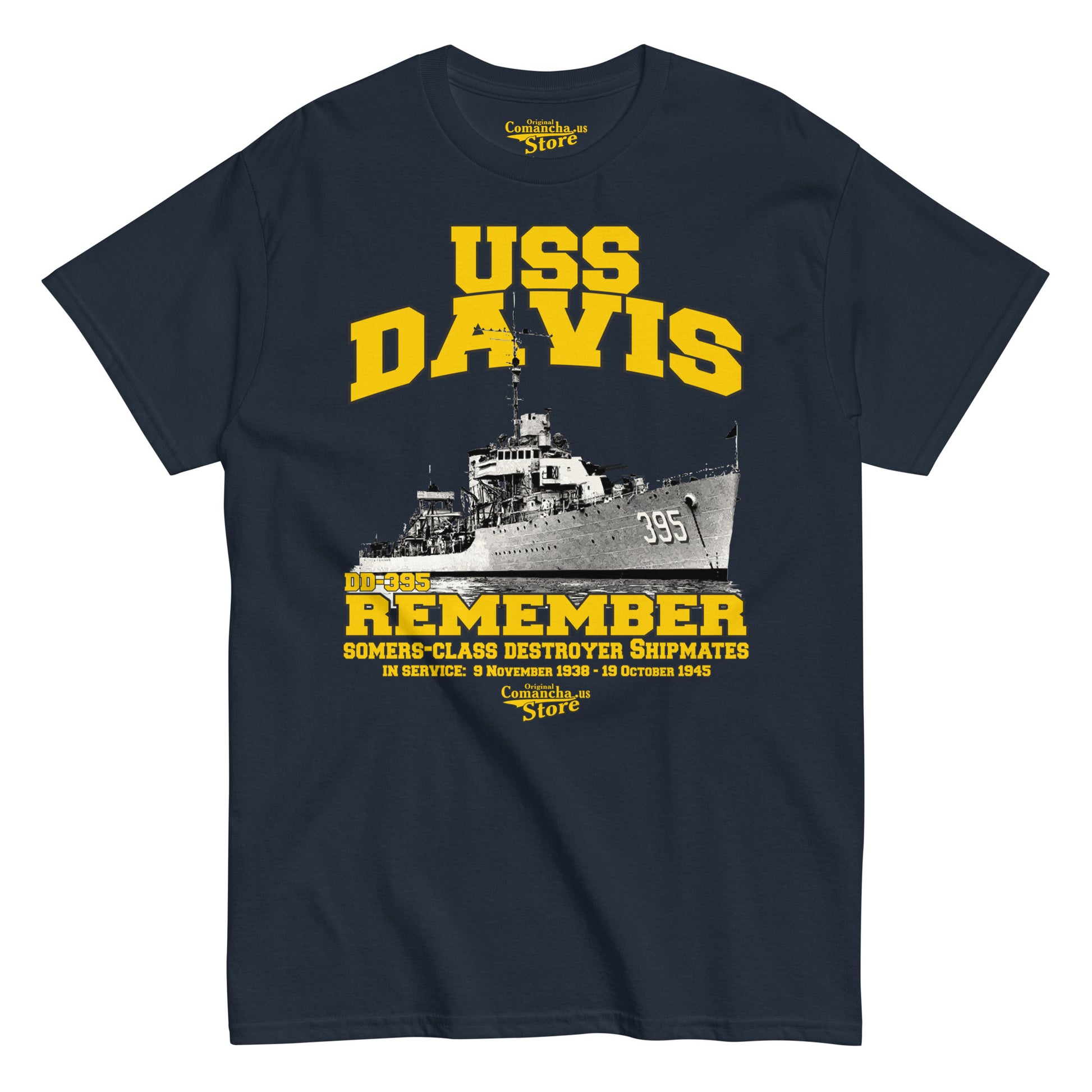 USS Davis DD-395 T-shirt, USS Davis DD-395 veterans tee, USS Davis DD-395 was a Somers-class destroyer in the United States Navy. Comancha Navy Ships Store,