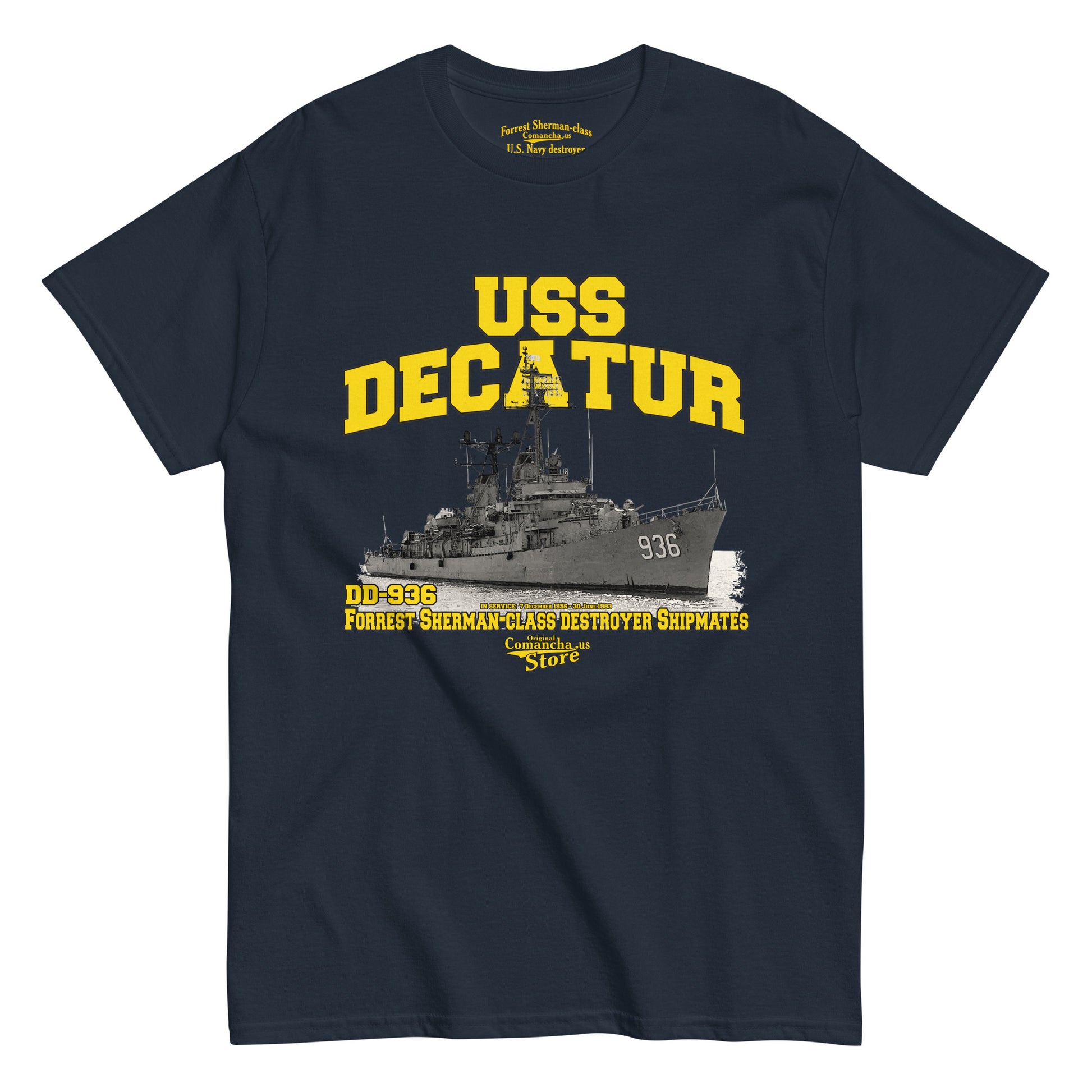 USS Decatur DD-936 shipmates t-shirt, USS Decatur DD-936 destroyer t-shirt, USS Decatur DD-936 was a Forrest Sherman-class destroyer of the United States Navy in service from 1956 to 1983. Comancha Graphics.