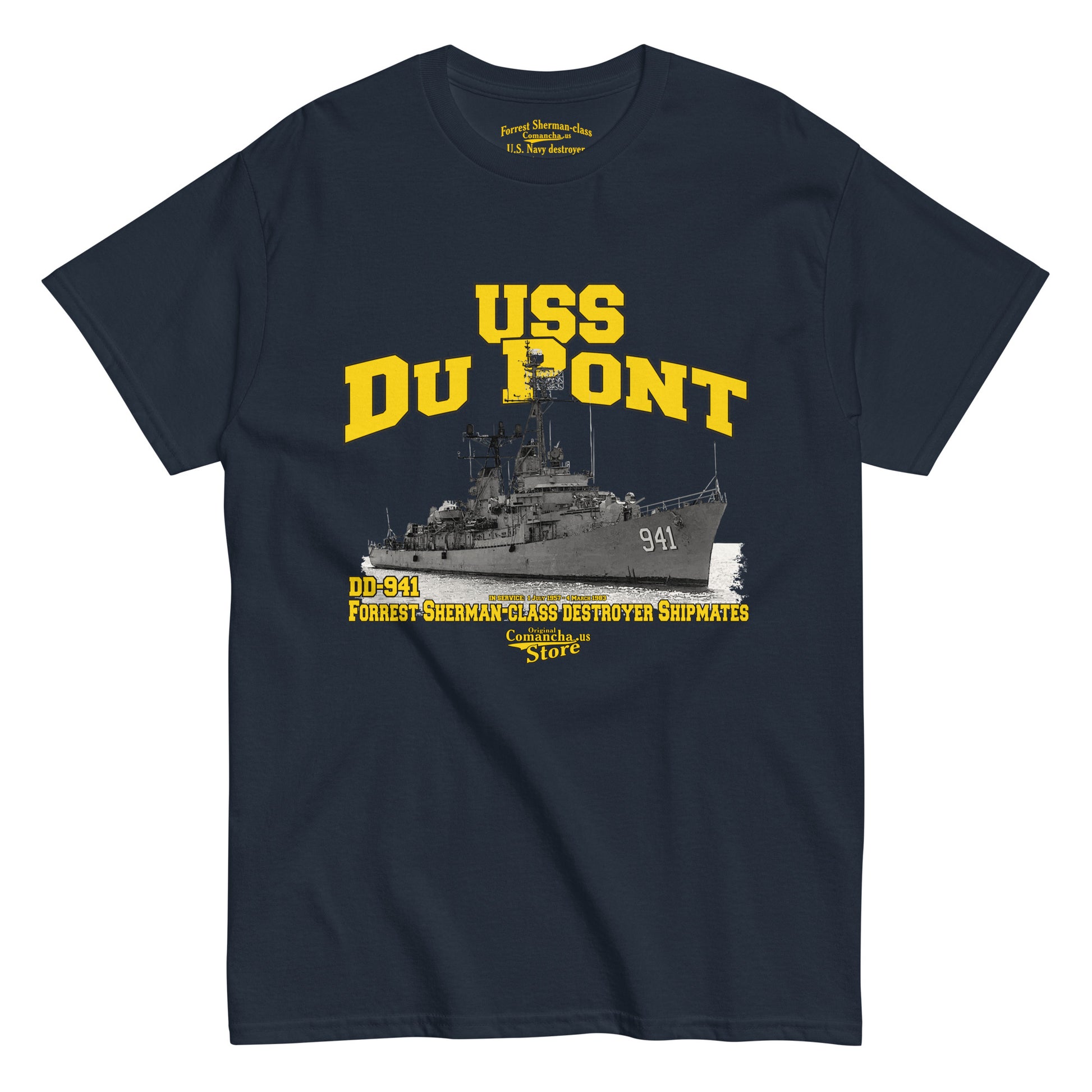 USS Du Pont DD-941 destroyer tee, USS Du Pont DD-941, named for Rear Admiral Samuel Francis Du Pont USN (1803–1865), was a Forrest Sherman-class destroyer Comancha Graphics,
