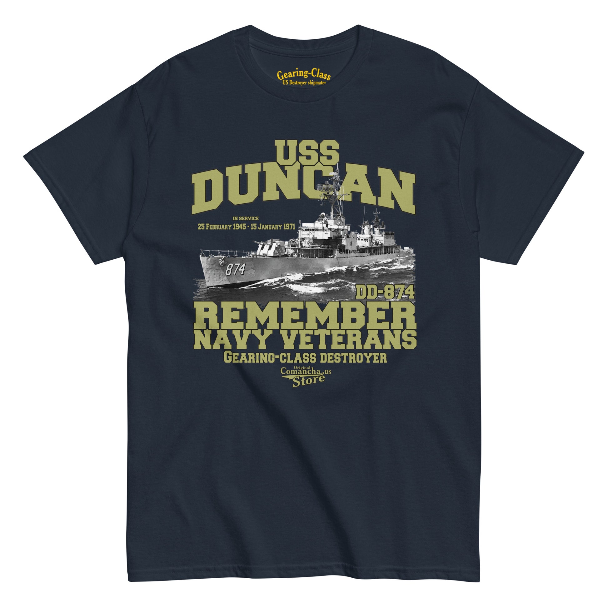USS Duncan DD-874 t-shirt, USS Duncan DD-874 was a Gearing-class destroyer of the United States Navy, the third named for Captain Silas Duncan USN (1788–1834). Comancha Graphics,