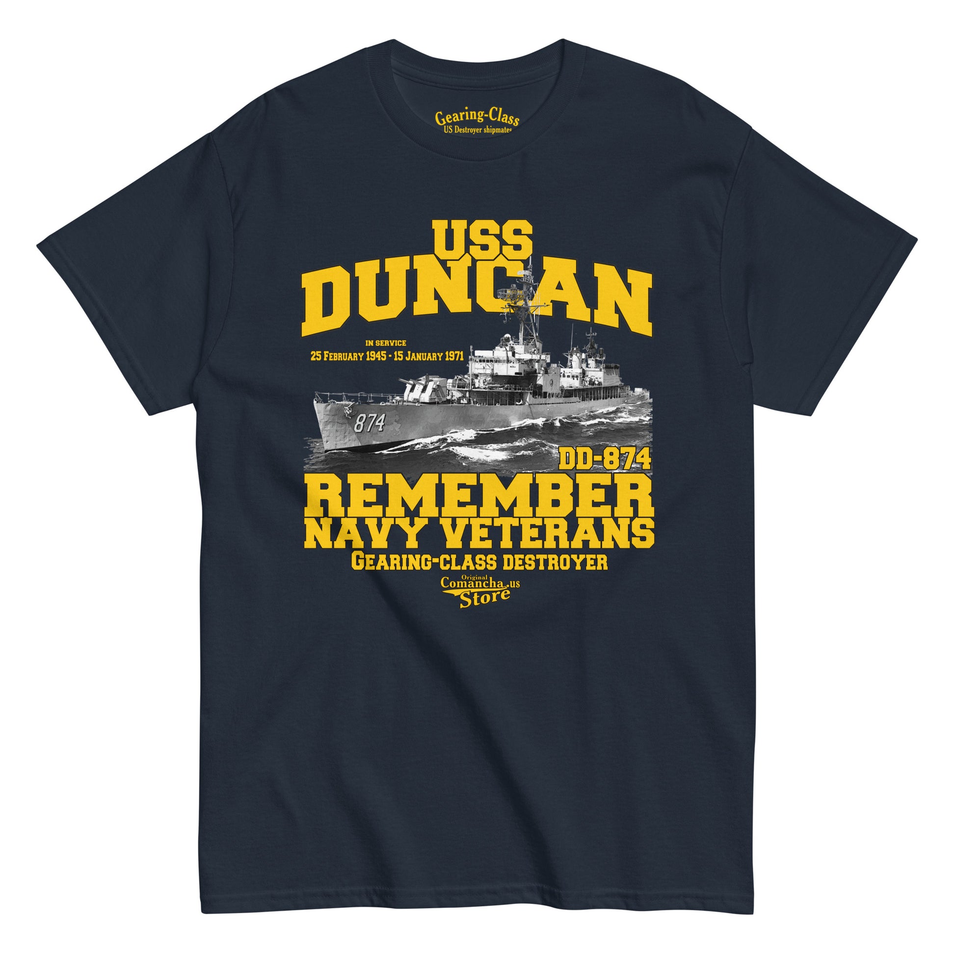 USS Duncan DD-874 tee, USS Duncan DD-874 was a Gearing-class destroyer of the United States Navy, the third named for Captain Silas Duncan USN (1788–1834). Comancha Graphics,