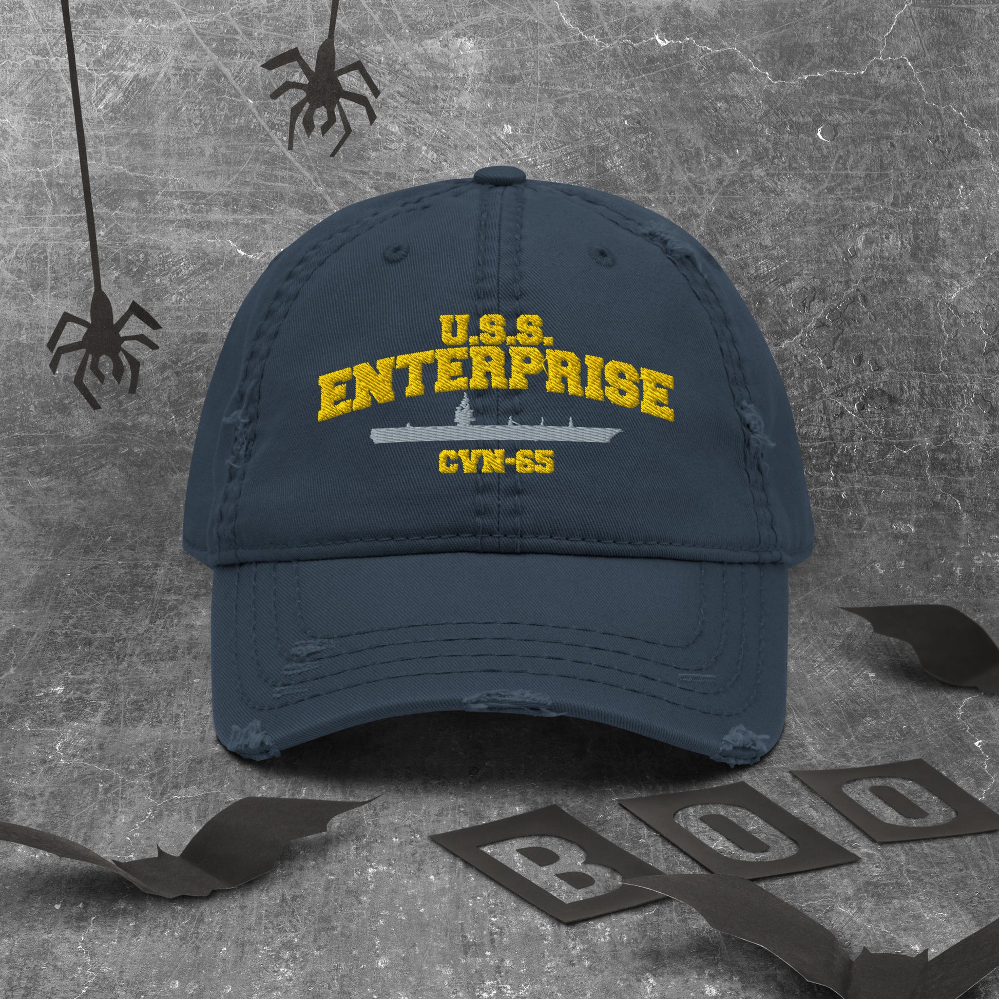 USS ENTERPRISE CVN-65 Distressed Dad Hat, USS ENTERPRISE CVN-65 Aircraft Carrier cap,