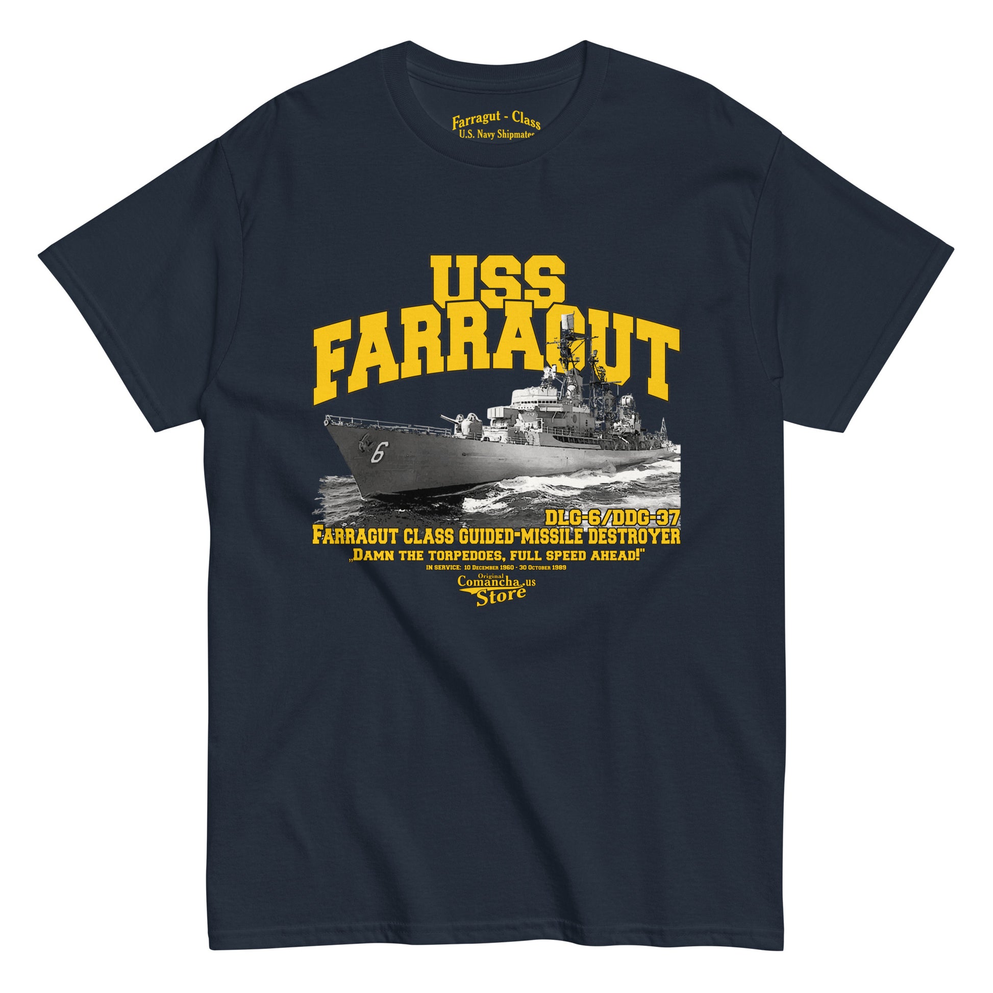 USS Farragut t-shirt, USS Farragut DLG-6/DDG-37 shipmates tee, USS Farragut DLG-6/DDG-37 was the lead ship of her class of guided-missile destroyers, Comancha Graphics,