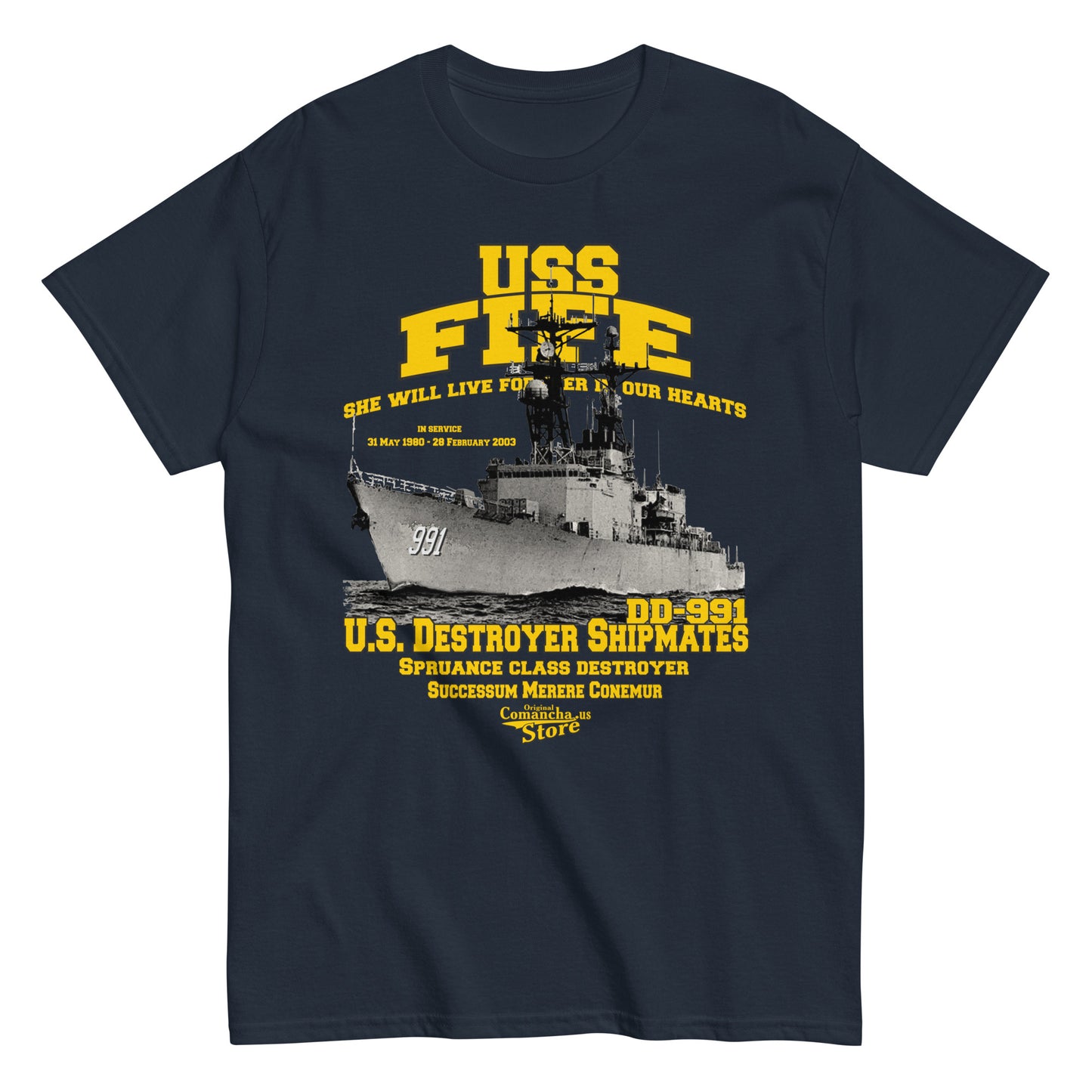 USS Fife DD-991 t-shirt, USS Fife (DD-991), a Spruance-class destroyer, was a ship of the United States Navy, comancha shop,