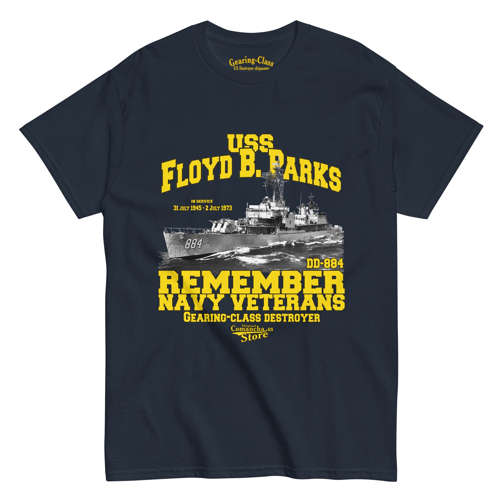 USS Floyd B. Parks DD-884 t-shirt, USS Floyd B. Parks (DD-884) was a Gearing-class destroyer in service with the United States Navy from 1945 to 1973. She was scrapped in 1974. Comancha Graphics,