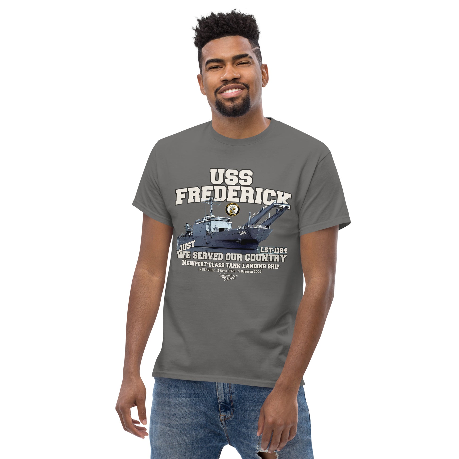 USS Frederick LST-1184 t-shirt, USS Frederick Shipmates t-shirt, USS Frederick (LST-1184) was a Newport-class tank landing ship which replaced the traditional bow door-design tank landing ships (LSTs) of the United States Navy. Comancha T-shirts Store,