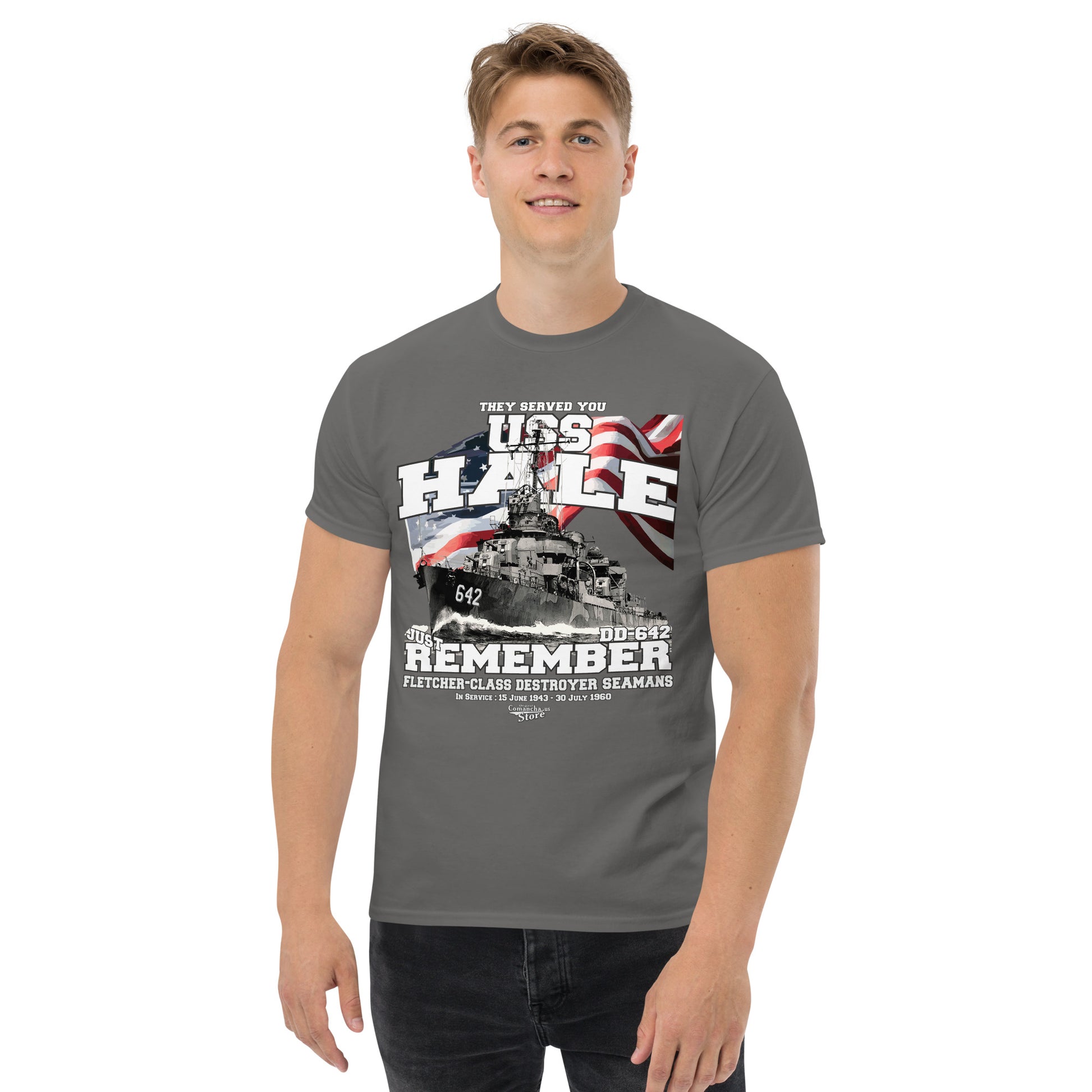 USS Hale DD-642 Destroyer t-shirt, USS Hale (DD-642), a Fletcher-class destroyer, Comancha Shop,