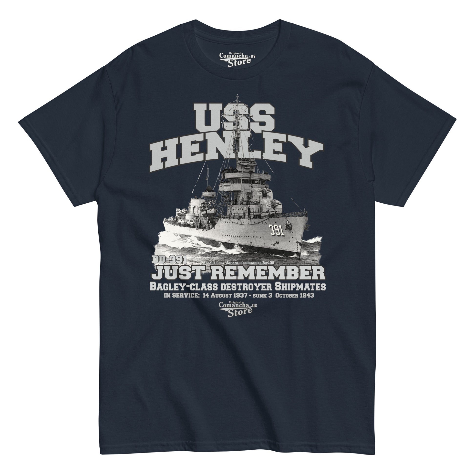 USS Henley DD-391 t-shirt, USS Henley DD-391 Shipmates T-shirt, USS Henley DD-391, a Bagley-class destroyer, was the 2nd ship of the United States Navy. Comancha Store.