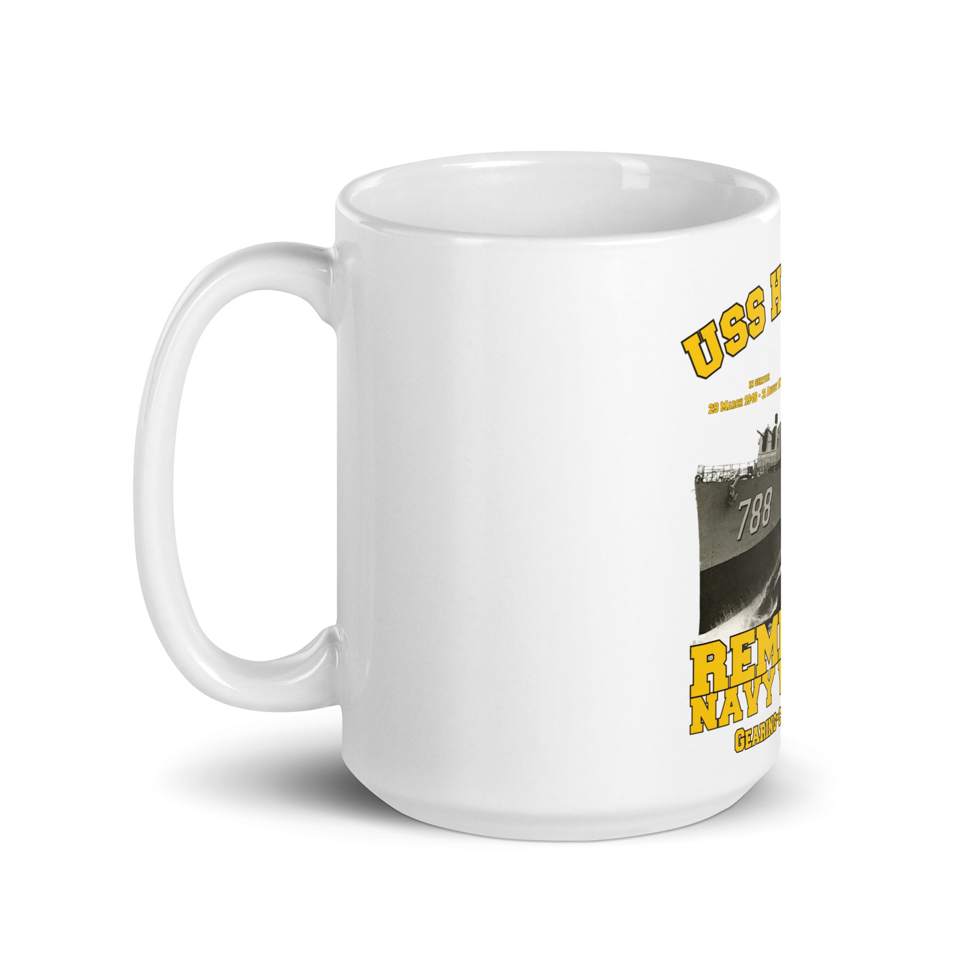 USS Hollister DD-788 Destroyer White glossy mug,