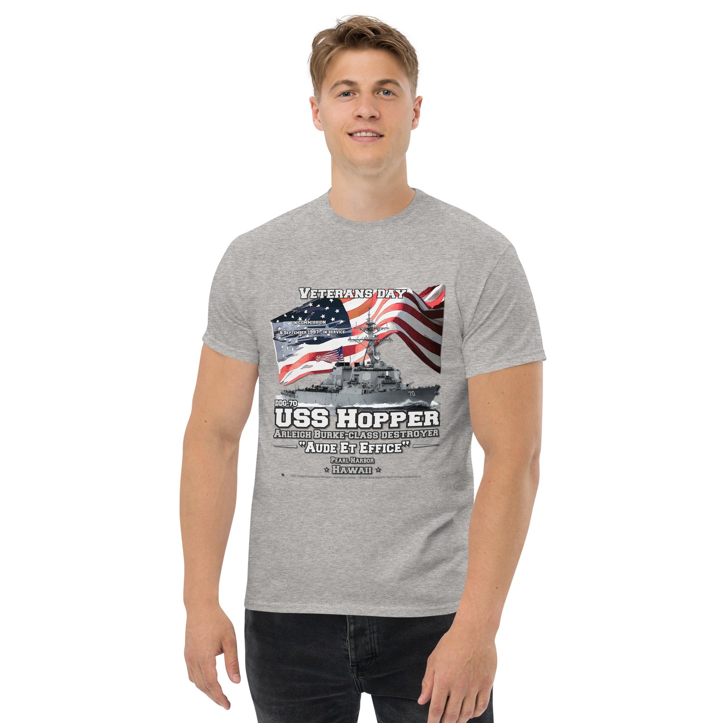 USS HOPPER DDG-70 Destroyer T-Shirt, USS HOPPER DDG-70 Destroyer Veterans Classic T-Shirt, Comancha Navy T-shirt store, Arleigh Burke Class t-shirts,