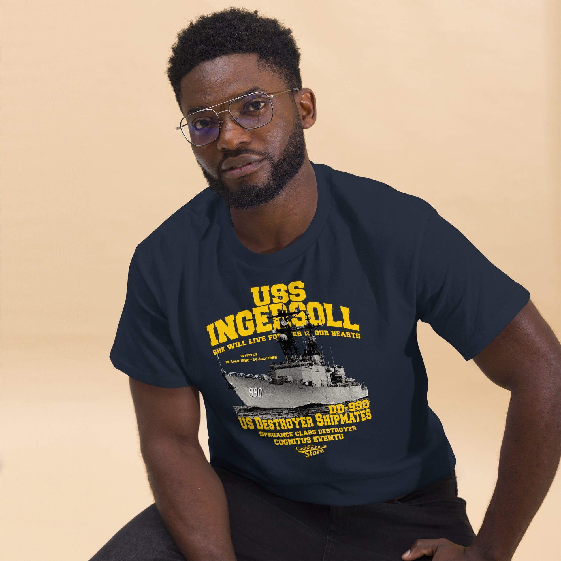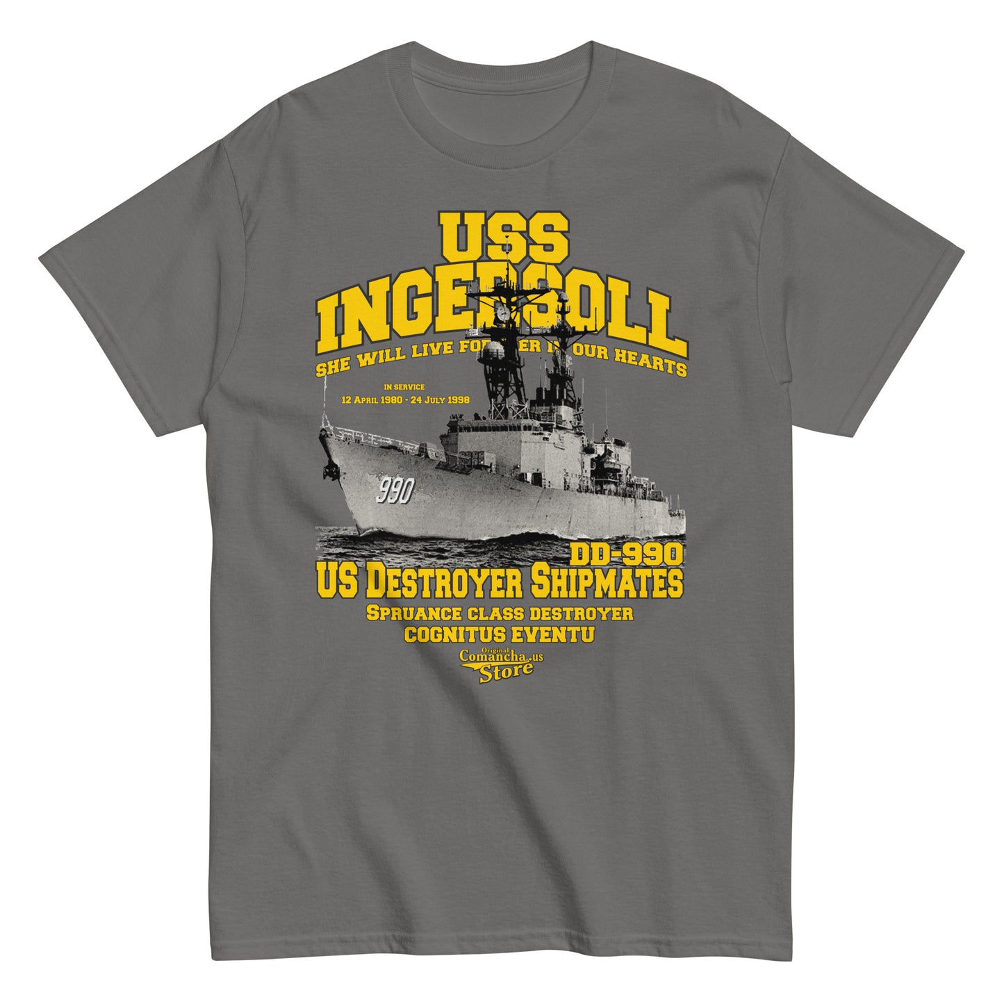 USS Ingersoll DD-990 shipmates t-shirt, USS Ingersoll (DD-990), a Spruance-class destroyer, was the second U.S. Navy ship to be named USS Ingersoll,