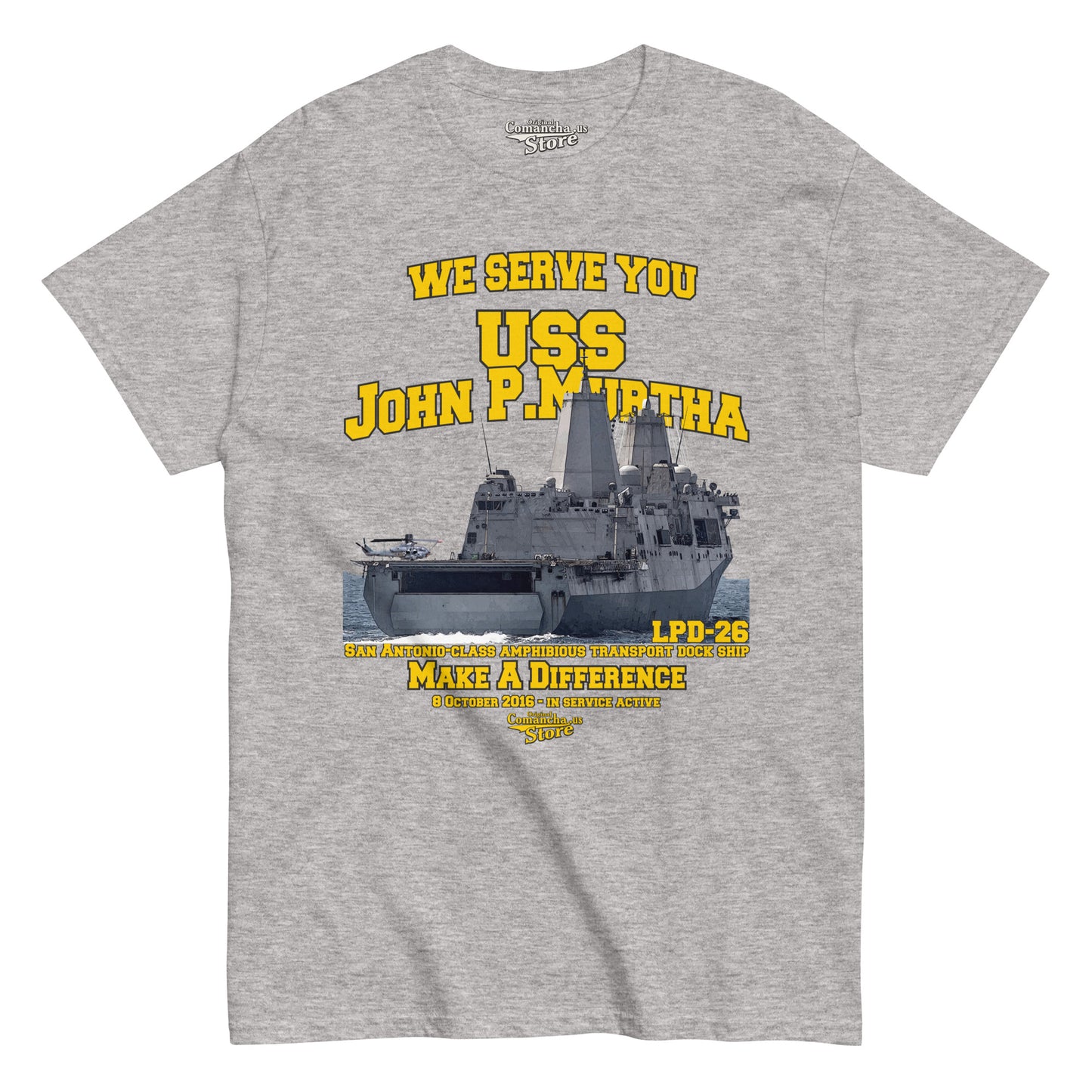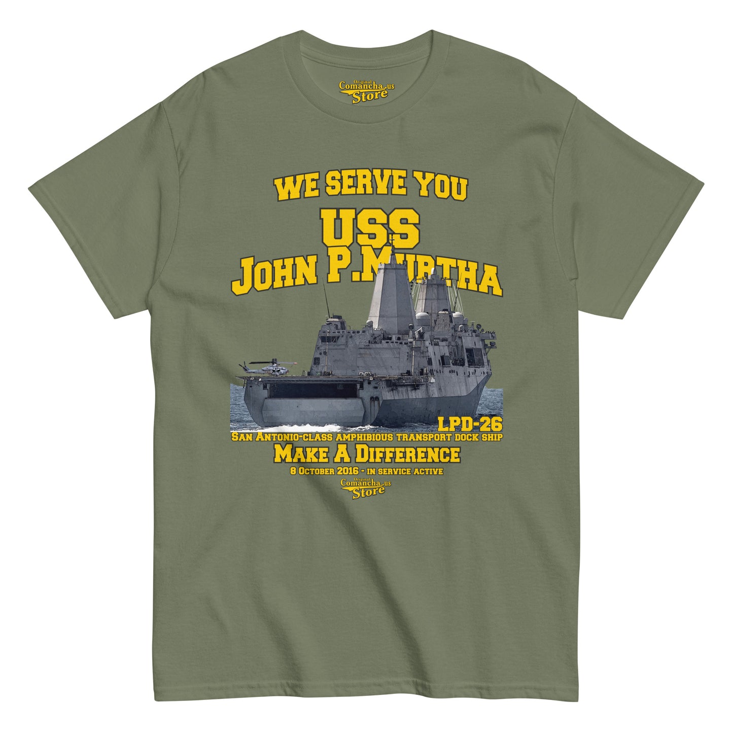 USS John P. Murtha LPD-26 Shipmates t-shirt, USS John P. Murtha (LPD-26) is the 10th San Antonio-class amphibious transport dock ship of the United States Navy, Comancha T-shirts Store,