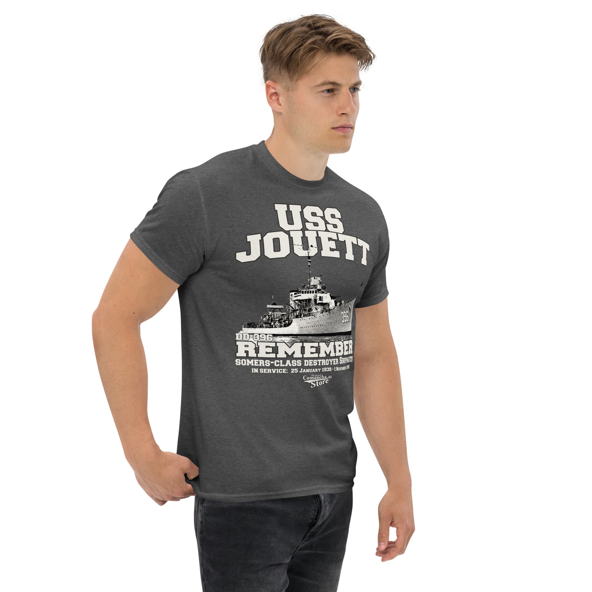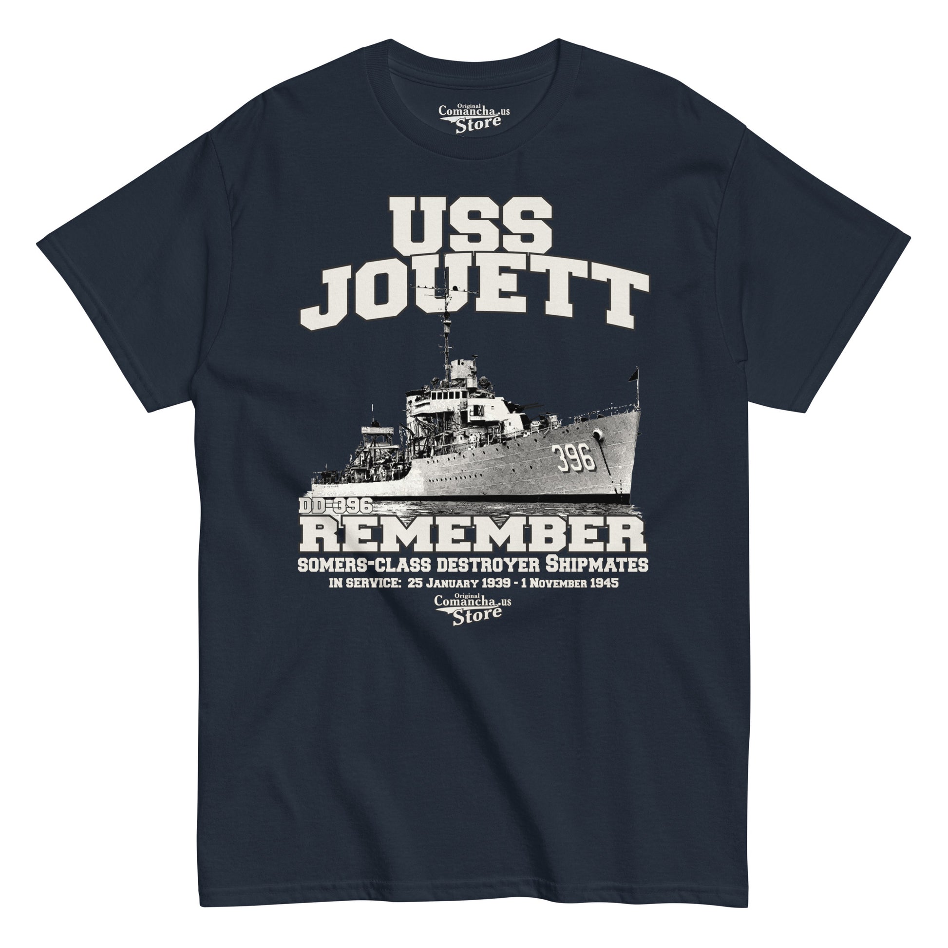 USS Jouett DD-396 t-shirt, USS Jouett DD-396 Shipmates tee, USS Jouett DD-396 was a Somers-class destroyer in the United States Navy. Comancha Graphics Store.