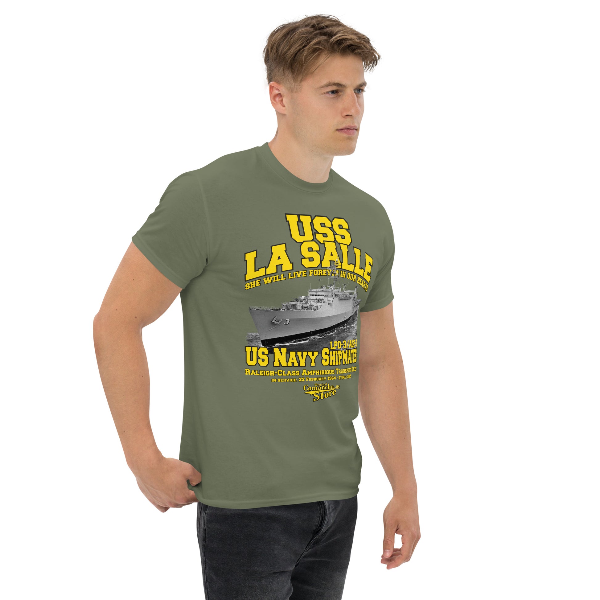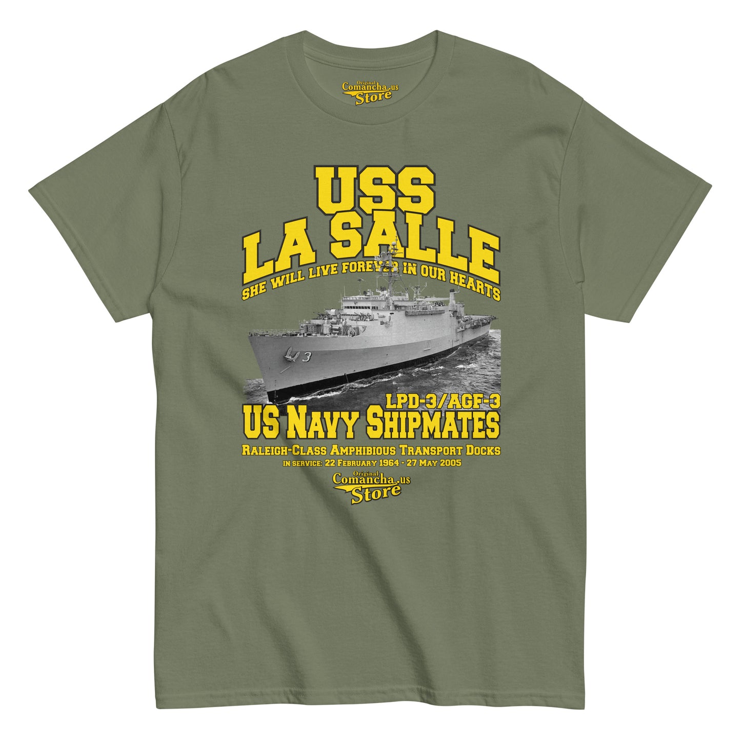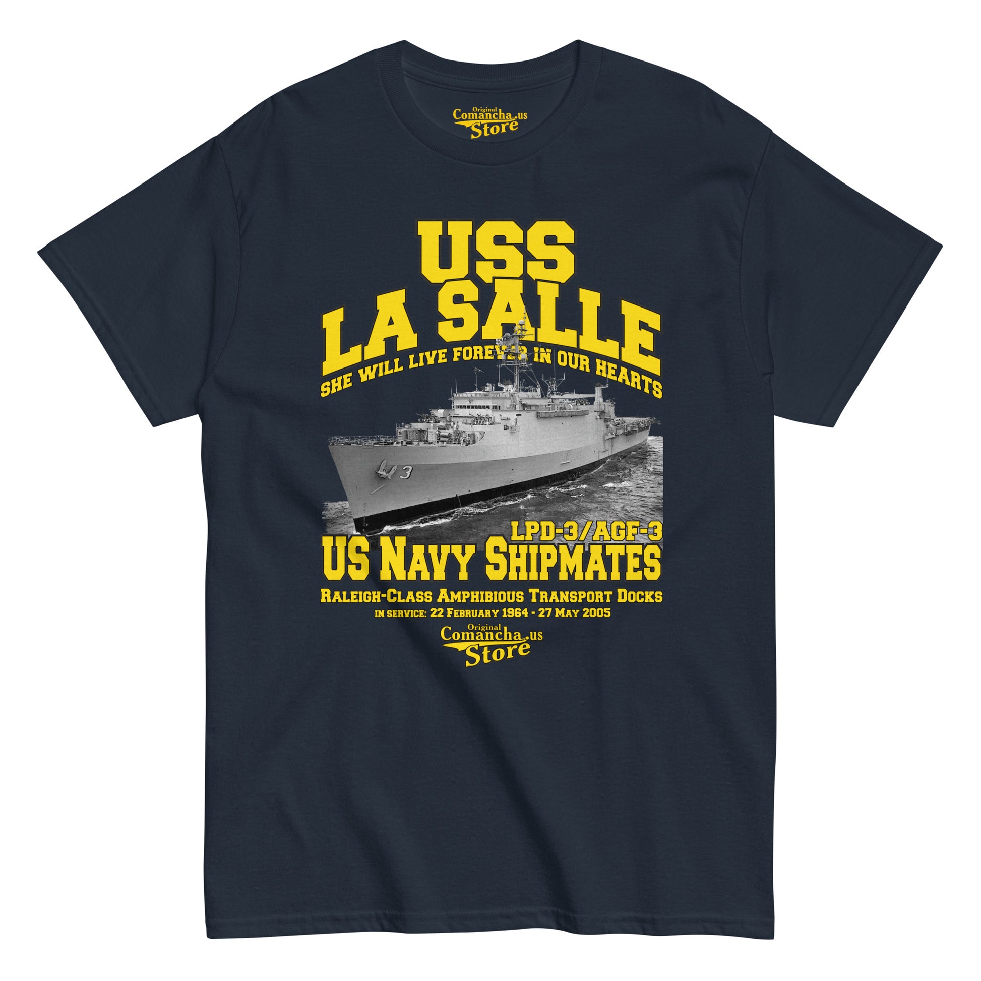 USS La Salle LPD-3 Shipmates Tee, USS La Salle (LPD-3/AGF-3) was built as a Raleigh-class amphibious transport dock and entered service with the United States Navy in 1964. Comancha Graphics,