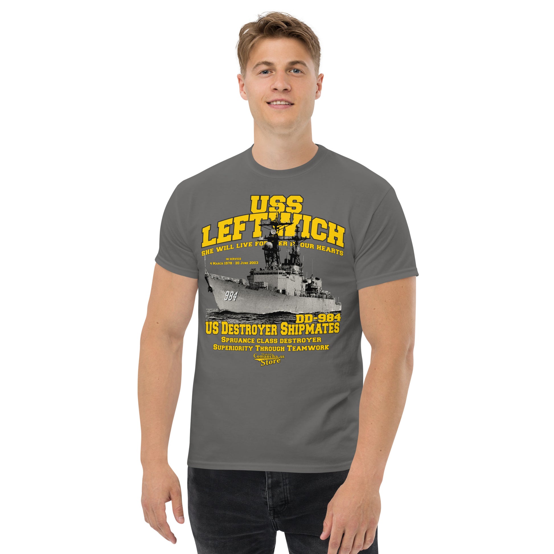 USS Leftwich DD-984 destroyer t-shirt, USS Leftwich (DD-984) was a Spruance-class destroyer, Comancha Store,