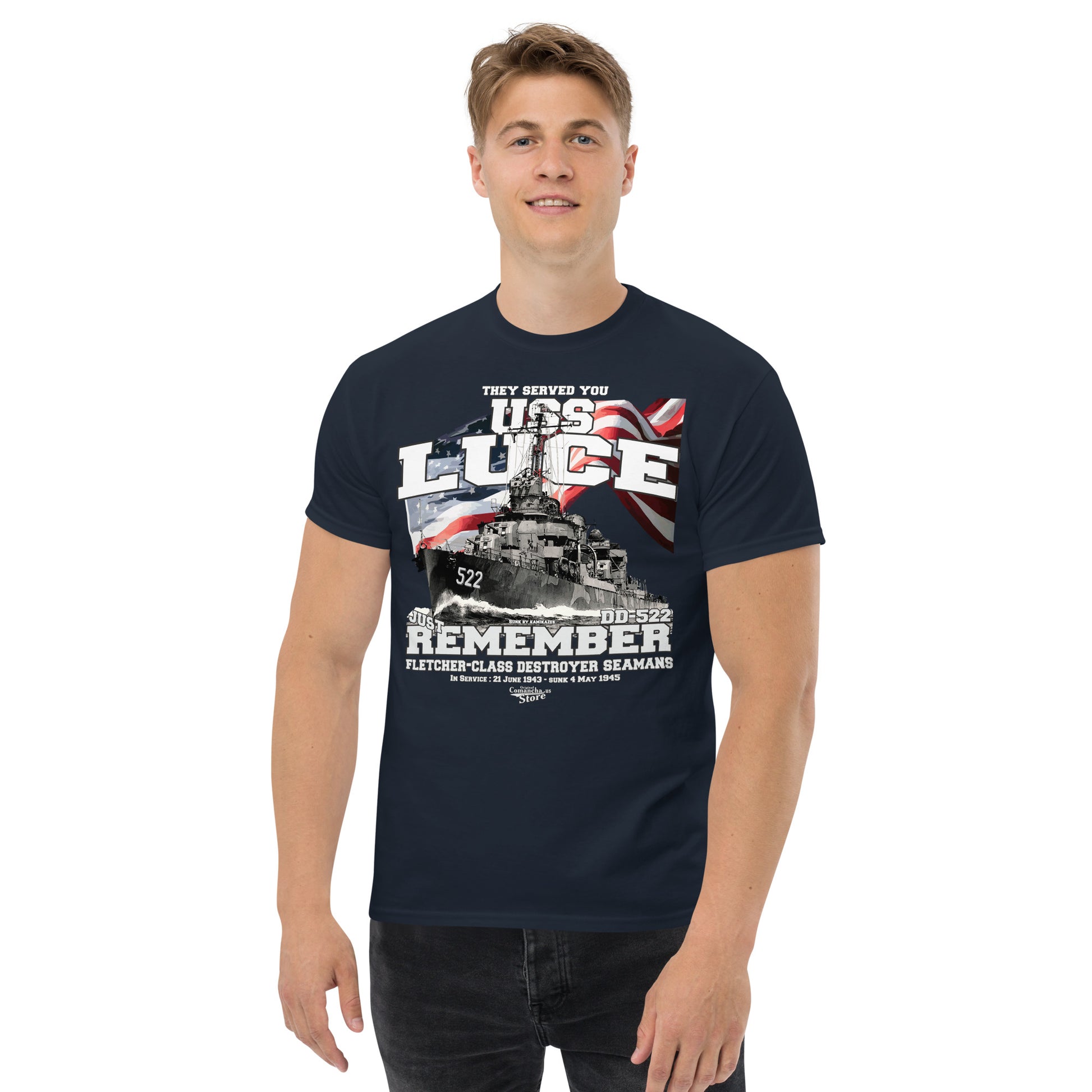 USS Luce DD-522 Destroyer T-shirt, USS Luce (DD-522), a Fletcher-class destroyer, Comancha T-shirts Store,