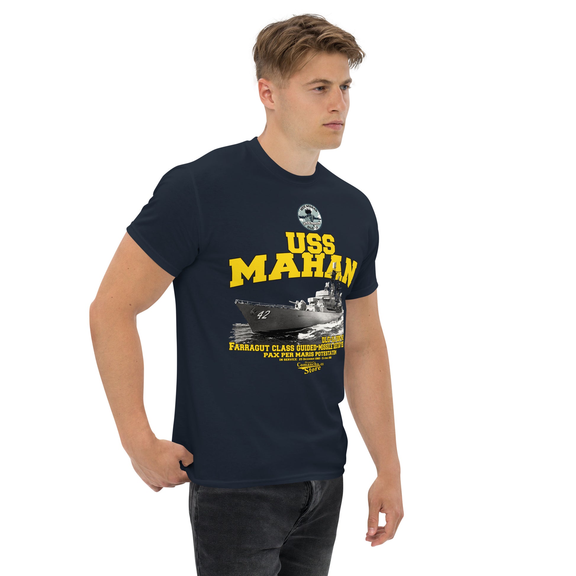 USS Mahan t-shirt, USS Mahan DLG-11 Tee, USS Mahan DLG-11/DDG-42 Shipmates t-shirt, USS Mahan DLG-11/DDG-42, was a Farragut-class guided missile destroyer in the United States Navy. Comancha Graphics,