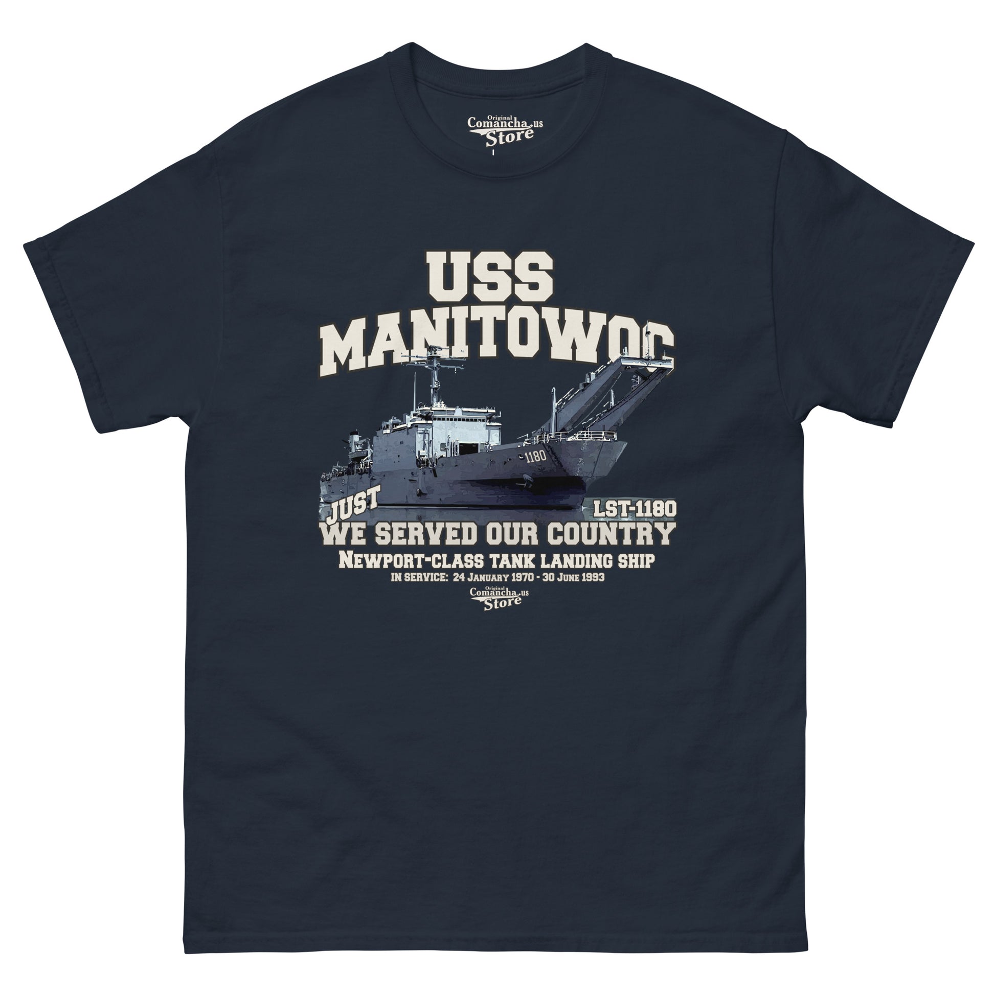 USS Manitowoc LST-1180 t-shirt, USS Manitowoc Shipmates t-shirt, USS Manitowoc (LST-1180) was the second ship of the Newport-class tank landing ships which replaced the traditional bow door-design tank landing ships (LSTs) in service with the United States Navy. Comancha T-shirts Store,
