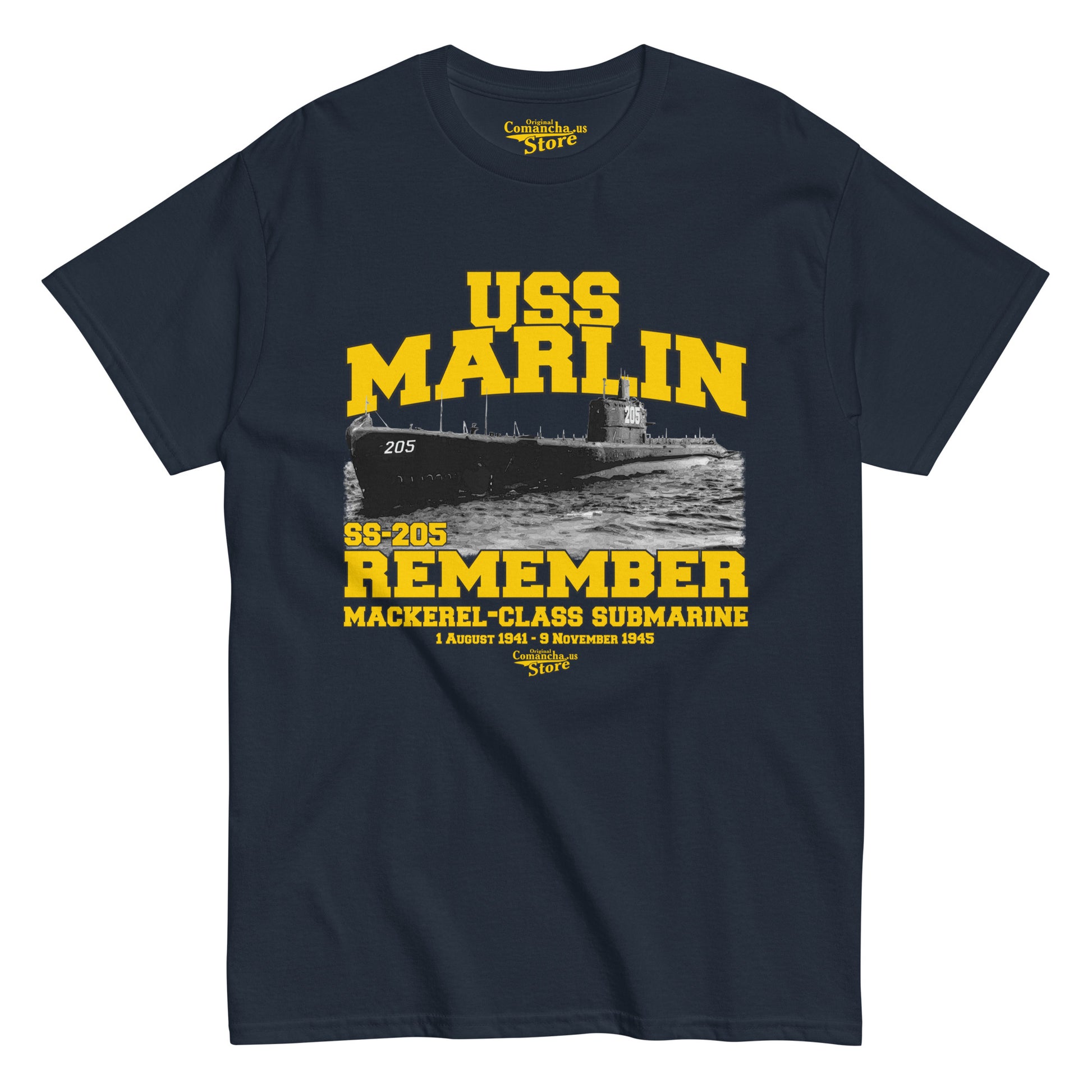 USS Marlin SS-205 Shipmates t-shirt, USS Marlin (SS-205), a Mackerel-class submarine, was the first ship of the United States Navy to be named for the marlin, a large game fish. Comancha T-shirts Store,