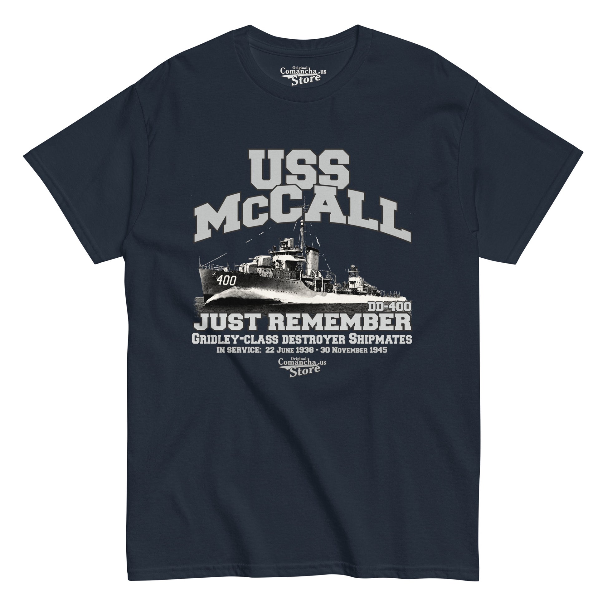 USS McCall DD-400 Shipmates T-shirt, The second USS McCall DD-400 was a Gridley-class destroyer in the United States Navy. Comancha Graphics Store.