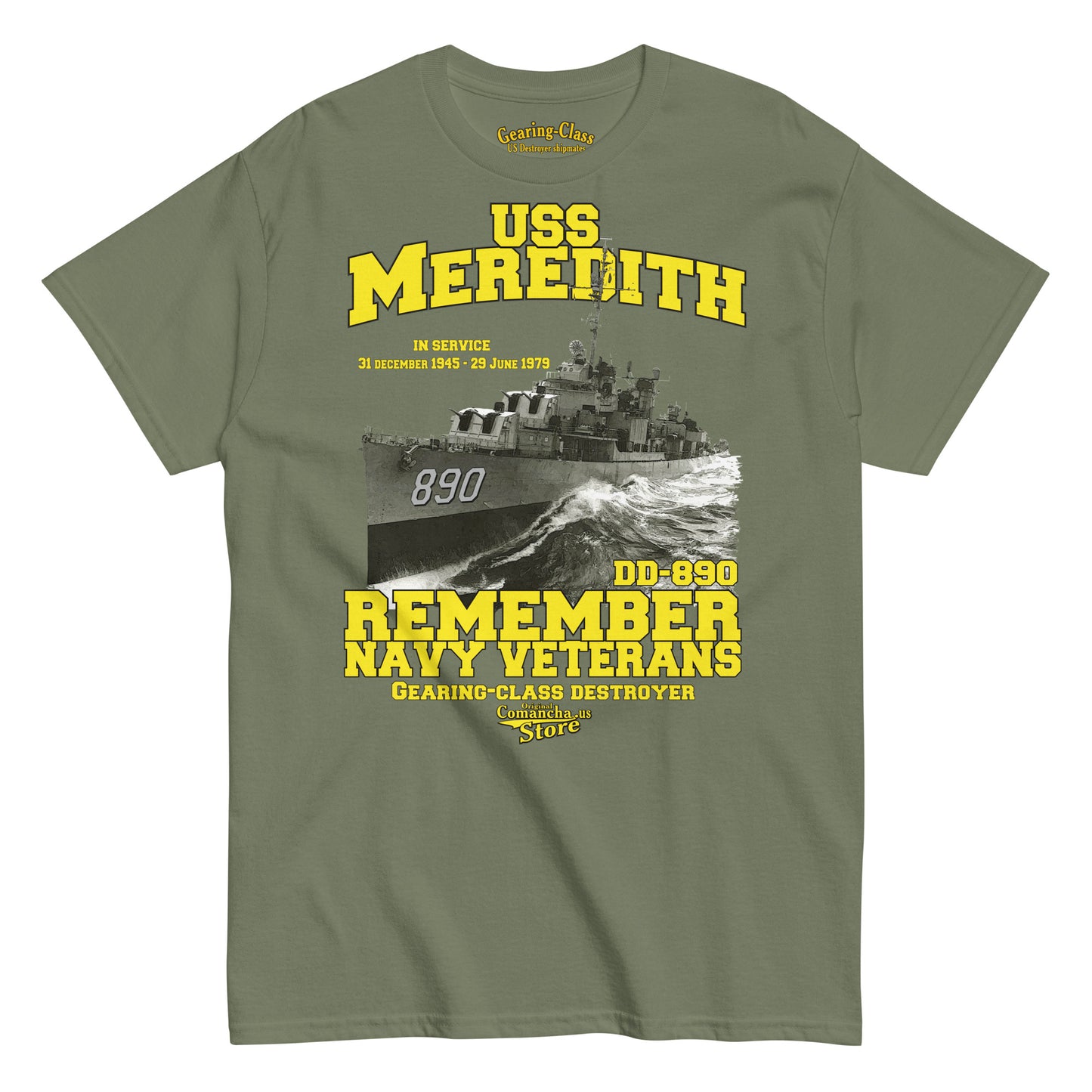 USS Meredith DD-890 t-shirt, USS Meredith (DD-890), a Gearing-class destroyer, was the fourth ship of the United States Navy to be named for the United States Marine Corps Sergeant Jonathan Meredith, Comancha Graphics,