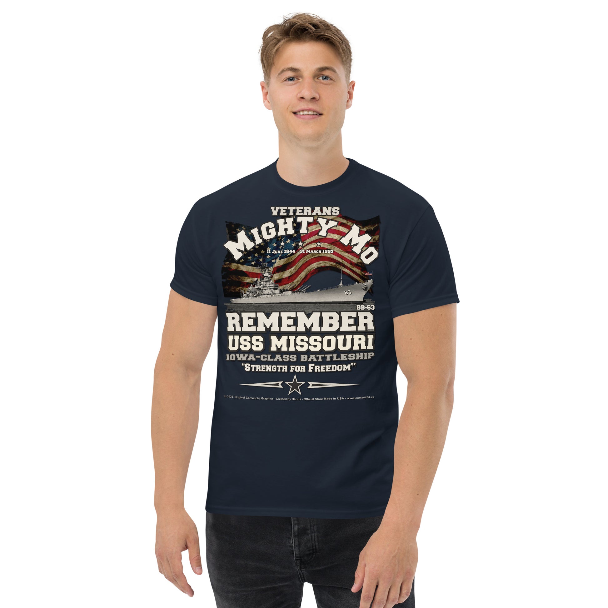 USS MISSOURI BB-63 battleship t-shirt, USS MISSOURI BB-63 Mighty Mo Veterans Tee, Comancha Graphics,