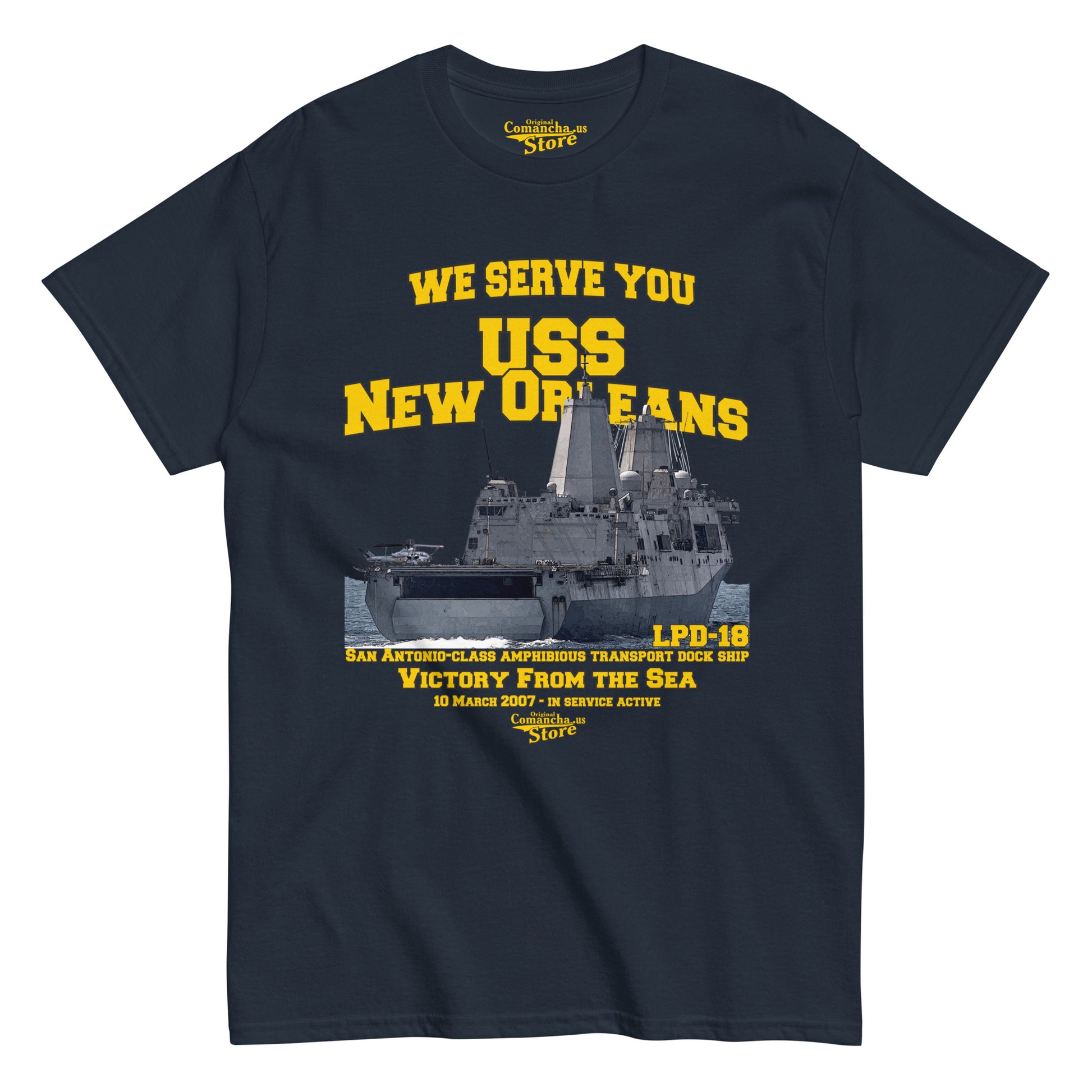 USS New Orleans LPD-18 Shipmates t-shirt, USS New Orleans (LPD-18), a San Antonio-class amphibious transport dock, is the fourth commissioned ship of the United States Navy, Comancha T-shirts Store,