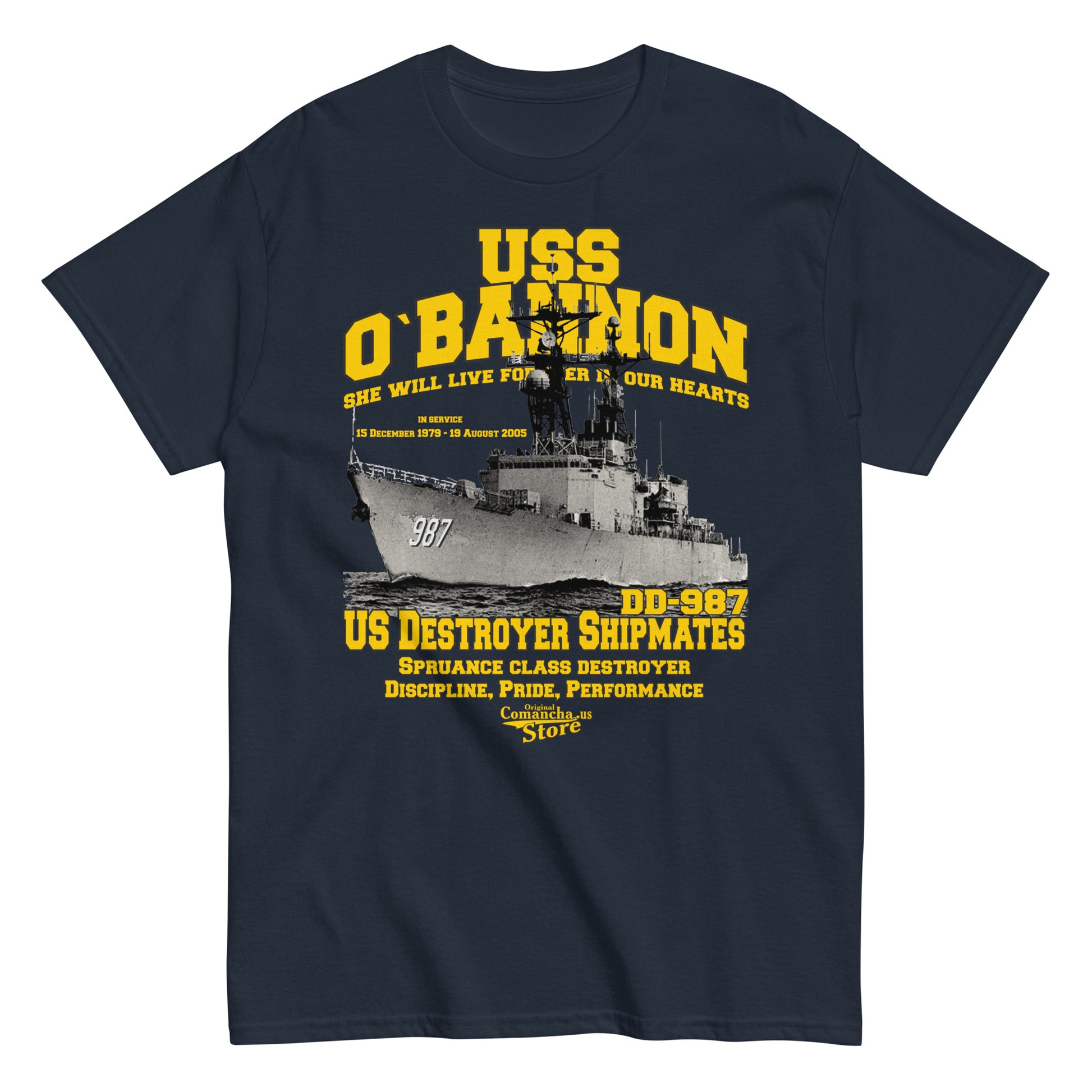 USS O'Bannon DD-987 Shipmates t-shirt, USS O'Bannon (DD-987), a Spruance-class destroyer, was the third ship of the United States Navy, Comancha T-shirts, Store,