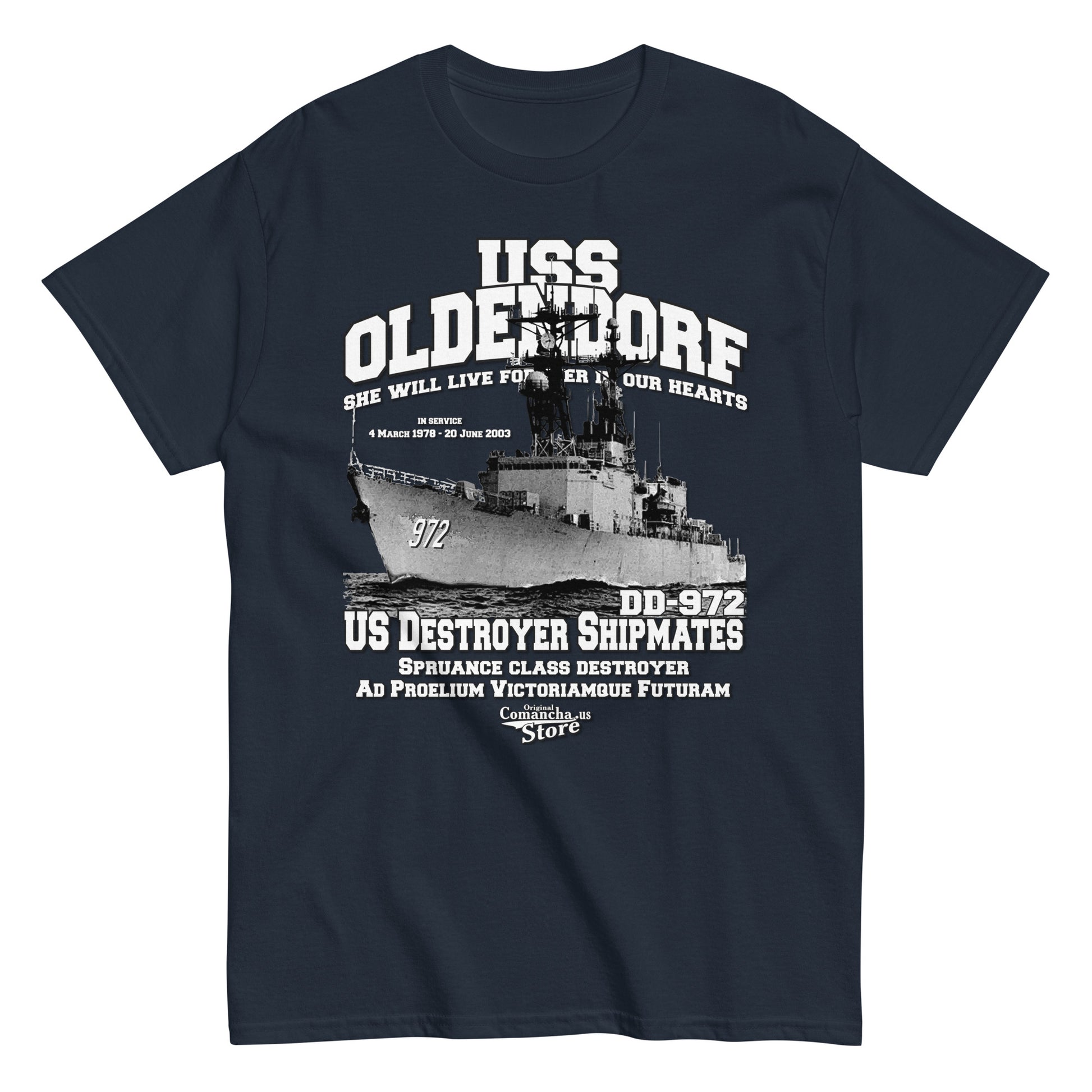 USS Oldendorf DD-972 Shipmates T-shirt, USS Oldendorf (DD-972), named for Admiral Jesse B. Oldendorf USN, was a Spruance-class destroyer, Comancha T-shirts Store,